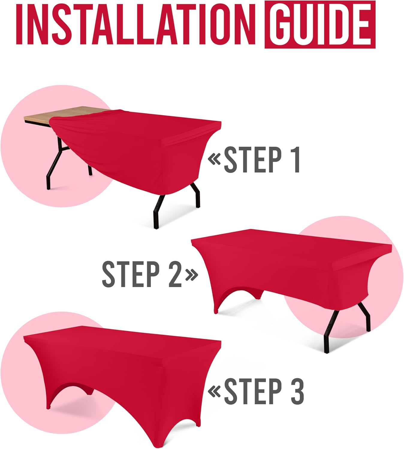 Utopia Kitchen 6FT Spandex Tablecloth [2 Pack, Red] 200 GSM Stretch, Fitted, Washable and Wrinkle Resistant Table Cloth Rectangle Cover for Trade Shows, Wedding, Parties [72Lx30Wx30H Inch]