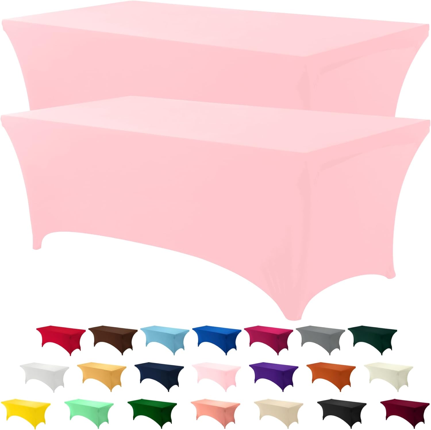 Utopia Kitchen 6FT Spandex Tablecloth [2 Pack, Pink] 200 GSM Stretch, Fitted, Washable and Wrinkle Resistant Table Cloth Rectangle Cover for Trade Shows, Wedding, Parties [72Lx30Wx30H Inch]