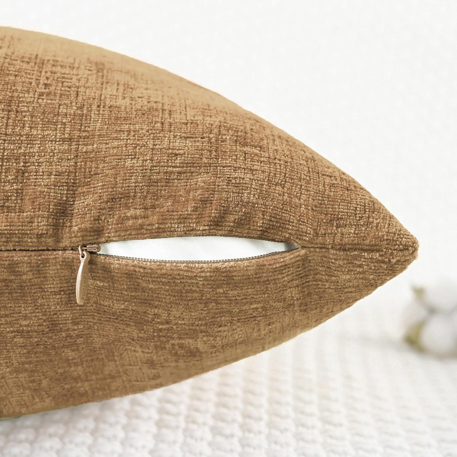 CaliTime Throw Pillow Covers Decorative 18 X 18 Inches Pack of 4 Cozy Chenille Cushion Cases for Couch Sofa Bed Living Room Home Apricot Brown