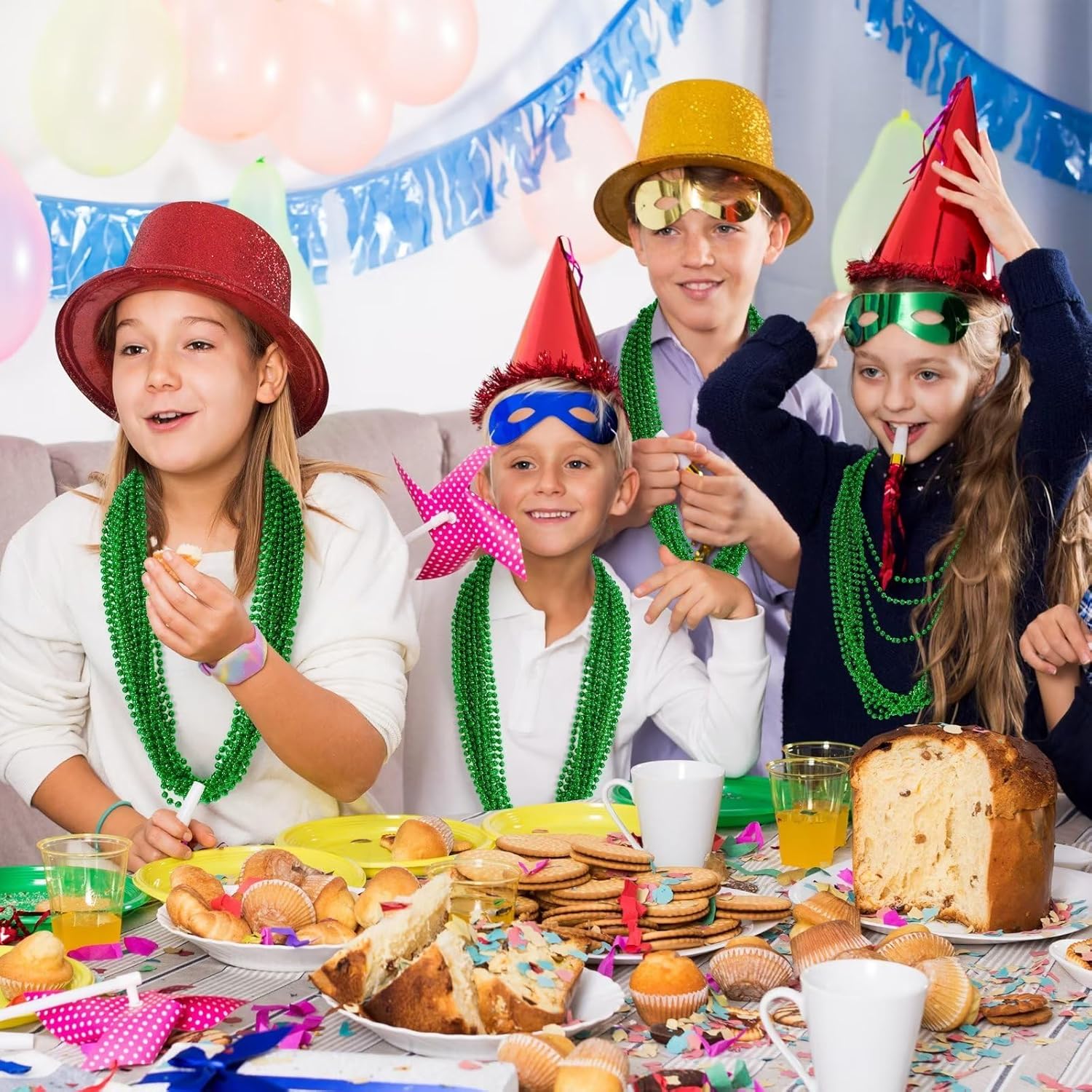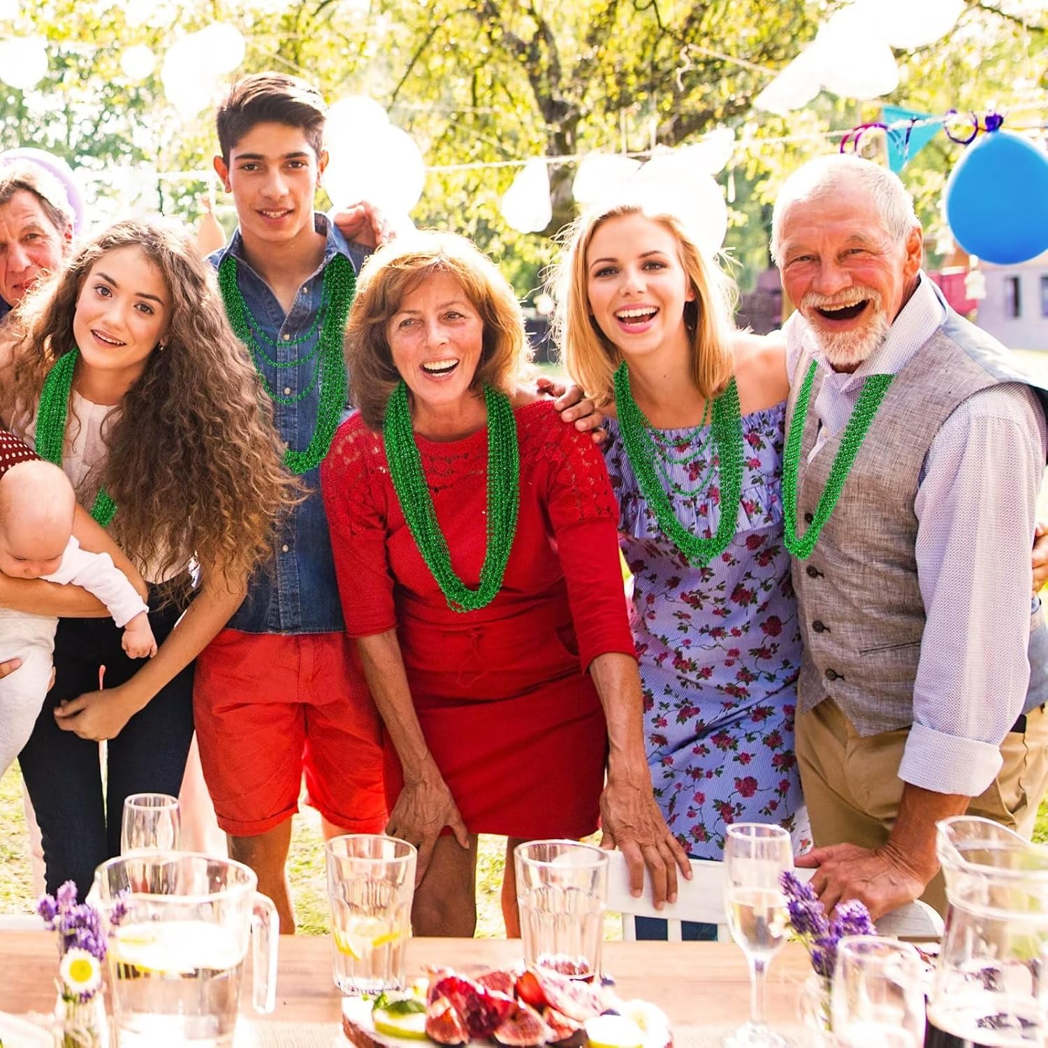 50PCS St Patricks Day Necklace, St. Patrick's Day Green Bead Necklace Accessories, Metallic Irish Saint Patrick Mardi Gras Necklaces Bulk, Parade Throw Accessories for Mardi Gras St. Patricks Party