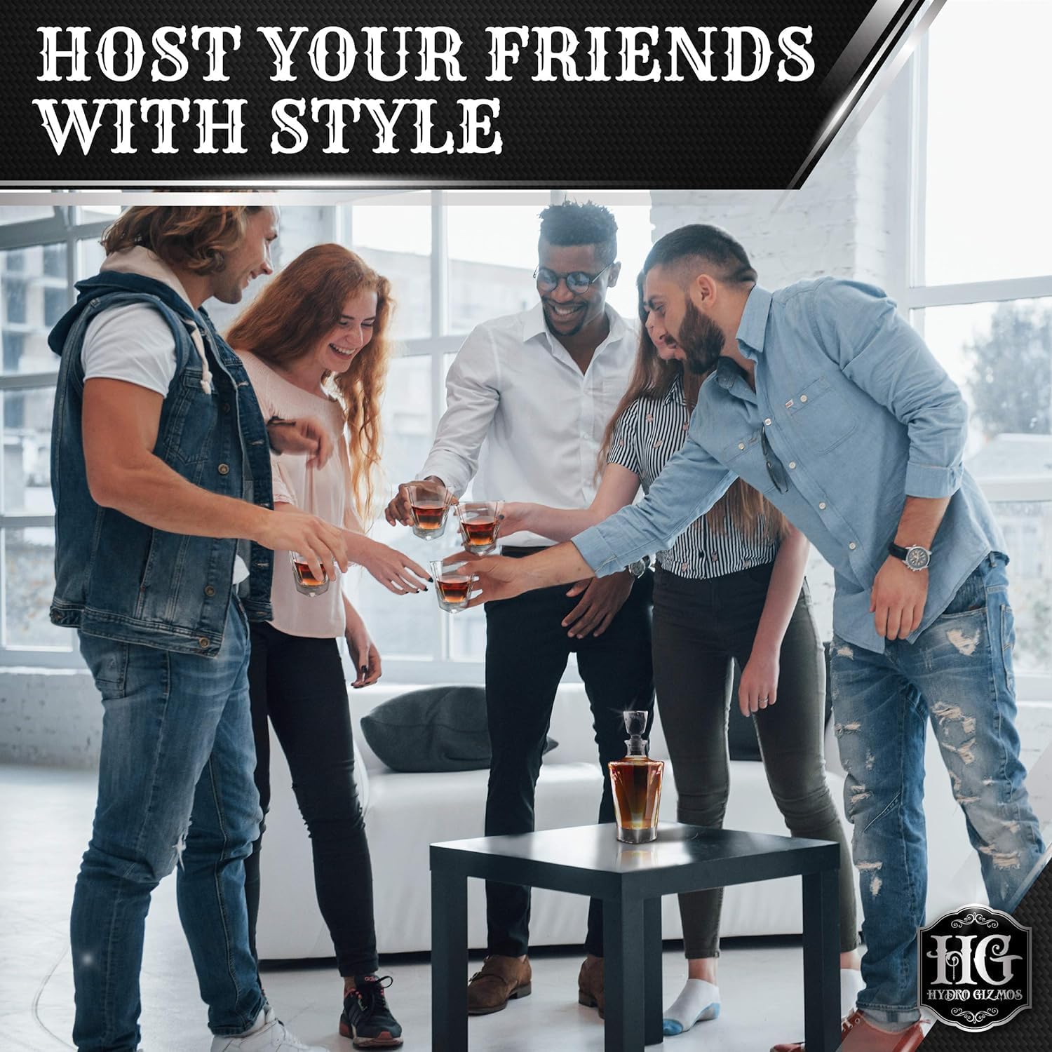 - Make it a party – beautify your home or office, AND savor a drink with some friends, all with the same whisky set. Your HG personalized decanter includes 4 signature drinking glasses to match