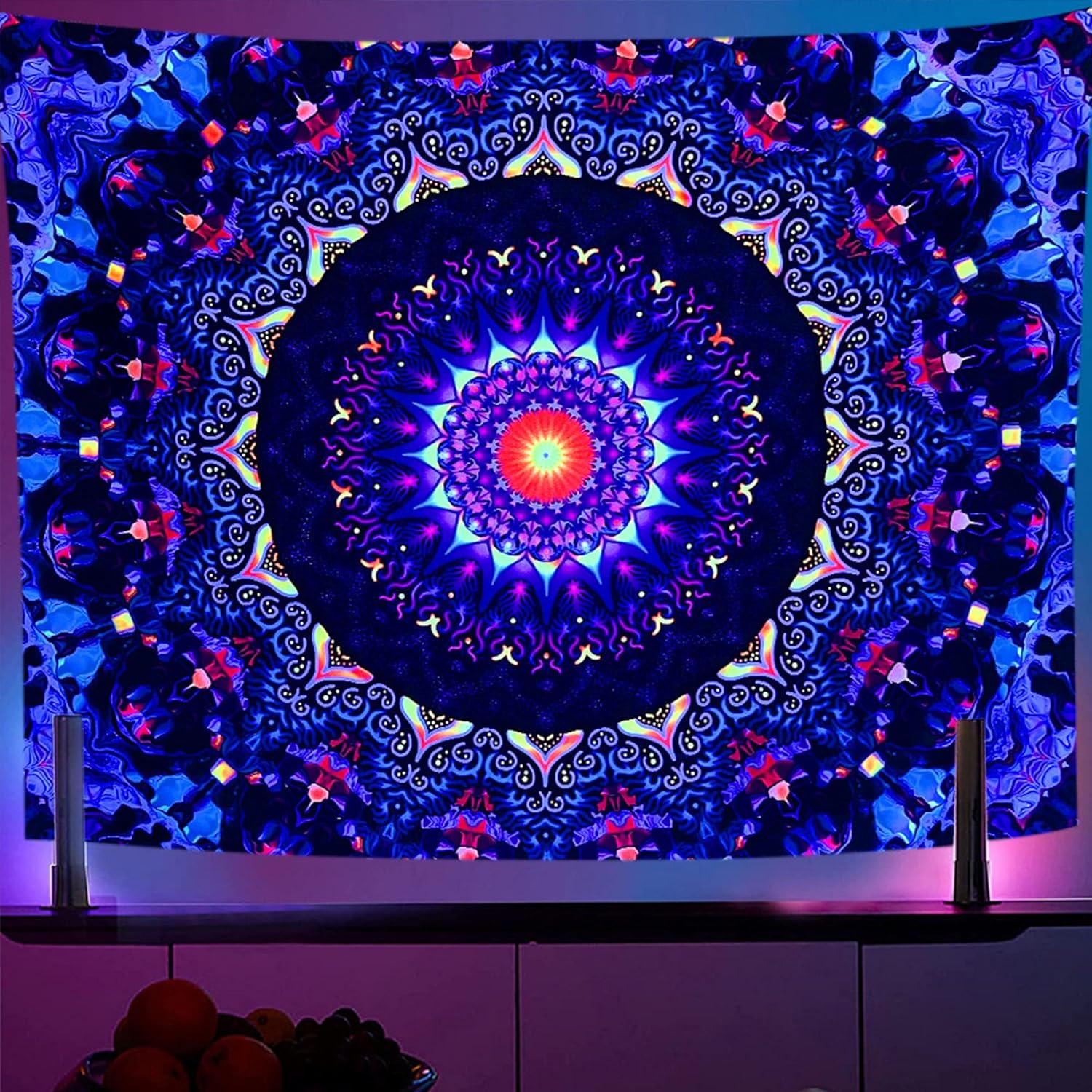 - Multi Purpose Tapestry: Due to its durable materials and cool design, this blacklight tapestry can be used as decoration in a variety of scenes. Such as wall hanging, bedroom accent, curtain backdrop, or ceiling display. It's also perfect for sofa throws, bedspreads, tablecloths, picnic blankets, beach towels, yoga mats, and beyond.