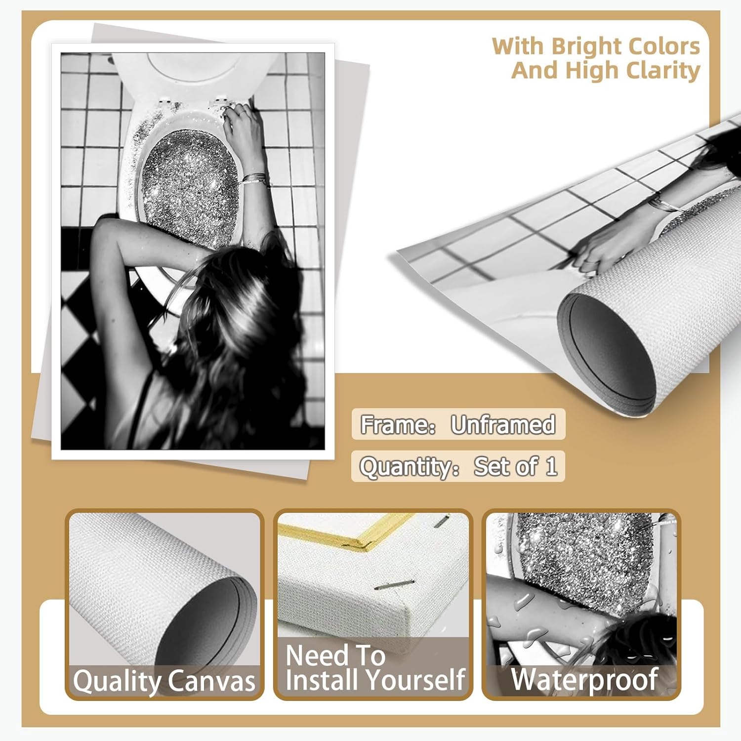 Liyark Funny Bathroom Wall Art Black and White posters Bar Disco Party prints painting Girls Bathroom Canvas wall art Funky aesthetics Teen Girl Bedroom wall decor for 12x16in Unframed