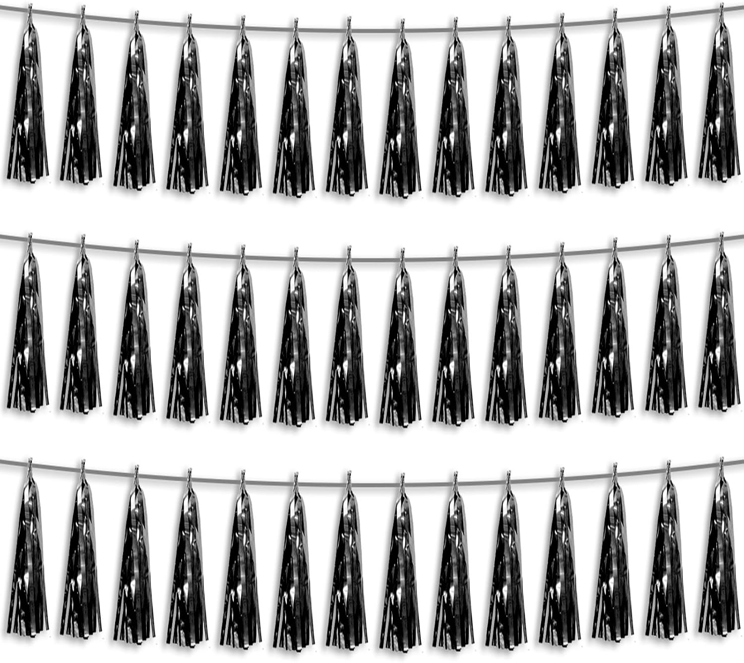 3P Black Foil Fringe Metallic Tassel Streamers Banner Tassel Garland for Parade Floats, Bachelorette, Wedding, Birthday, Halloween, Christmas, Bridal/Baby Shower Party Decorations