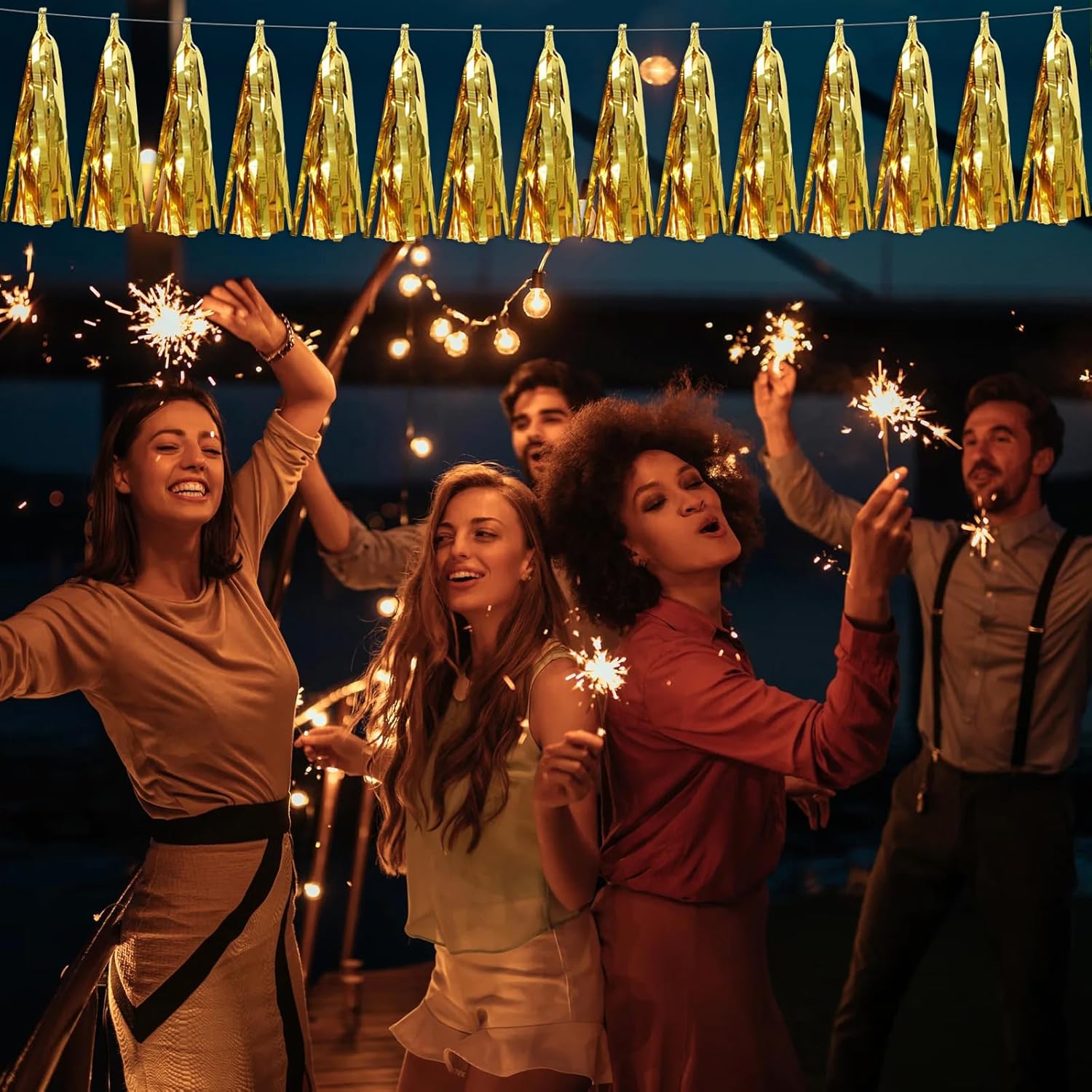 3P Gold Foil Fringe Metallic Tassel Streamers Banner Tassel Garland for Parade Floats, Bachelorette, Wedding, Birthday, Halloween, Christmas, Bridal/Baby Shower Party Decorations