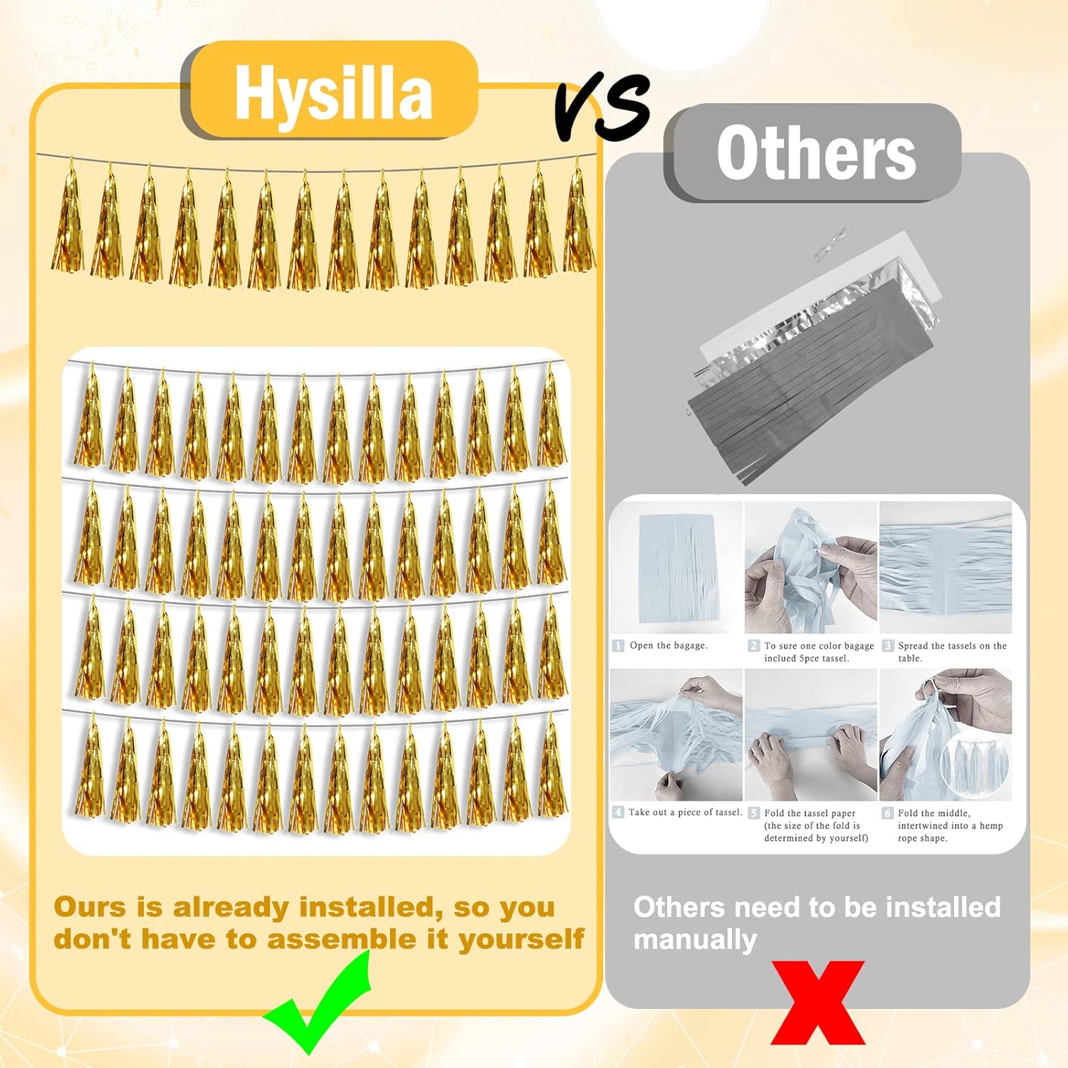 - 【Gold Party Supplies Set】: The total length of the gold birthday tassels banner is 29.5 feet 45tassels, divided into 3 strips, each 9.8 feet long. Each banner contains 15 tassels, and each tassel measures 14 inches, for birthday decorations many occasions, and so on
