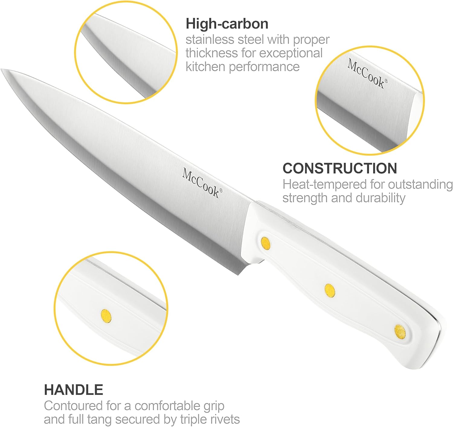 McCook® Knife Sets, White High Carbon Stainless Steel Kitchen Knife Sets with with Built-in Sharpener