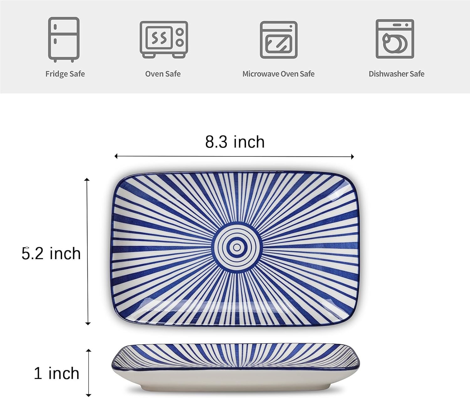 Selamica Ceramic Rectangular Salad Plates Set of 4, Small Serving Plates for Appetizers, Sushi, Fruit, Assorted Colors