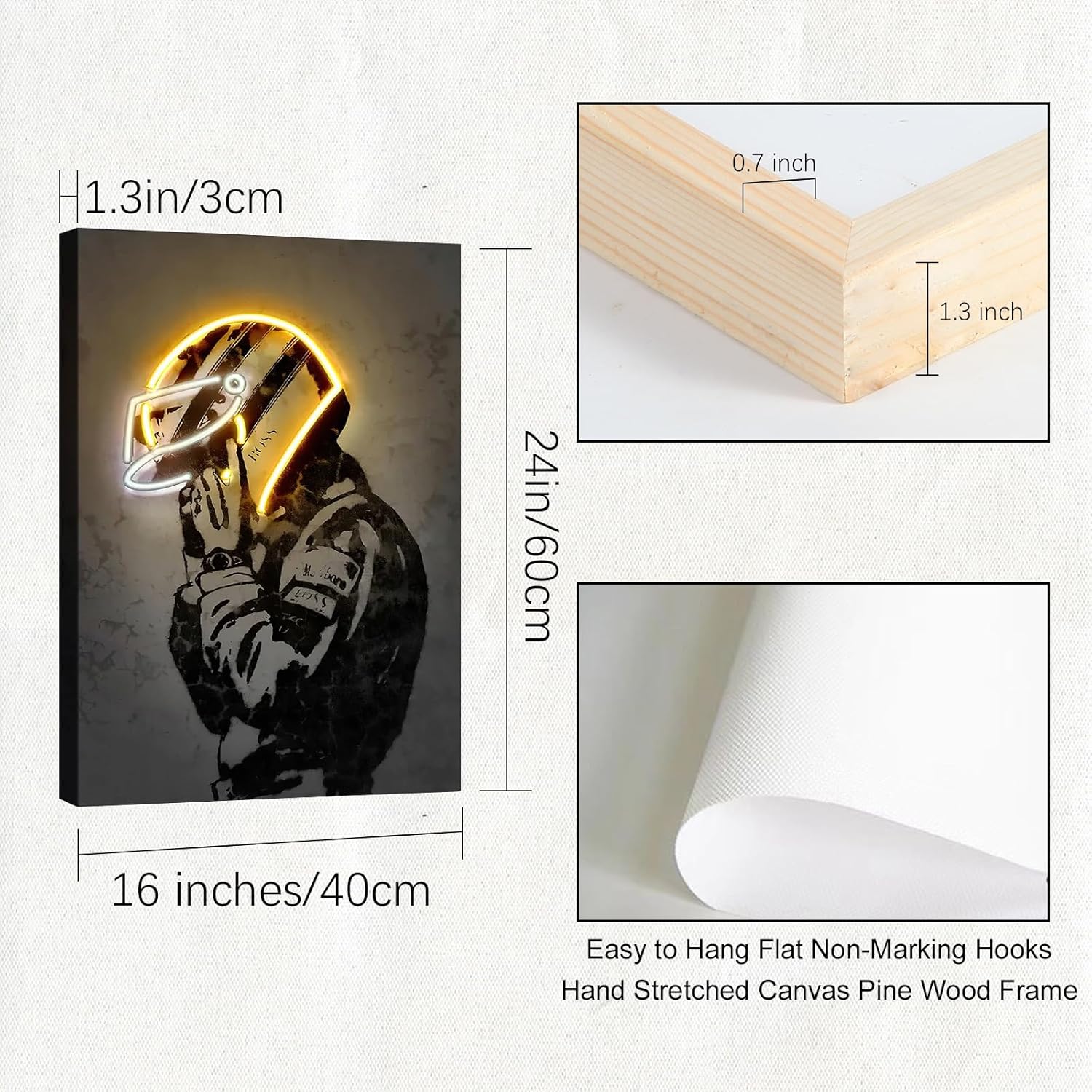 - NEON POSTER WALL PRINT: Racer print measures 16x24 inches (40x60 cm) and is hand stretched on a pine frame. Perfect for decorating sports rooms, gyms and game rooms.