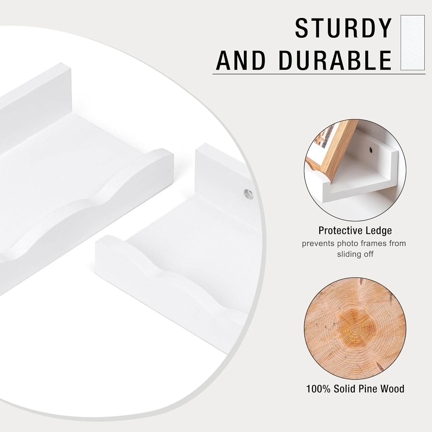 - ăPicture Ledge ShelvesăWith its effective wave design, these shelves reliably prevent items from falling off, providing a secure storage solution. You can easily organize your home space by placing picture frames, small plants, photo frames, books, toilet paper, bath towels, or decorations on these versatile shelves.