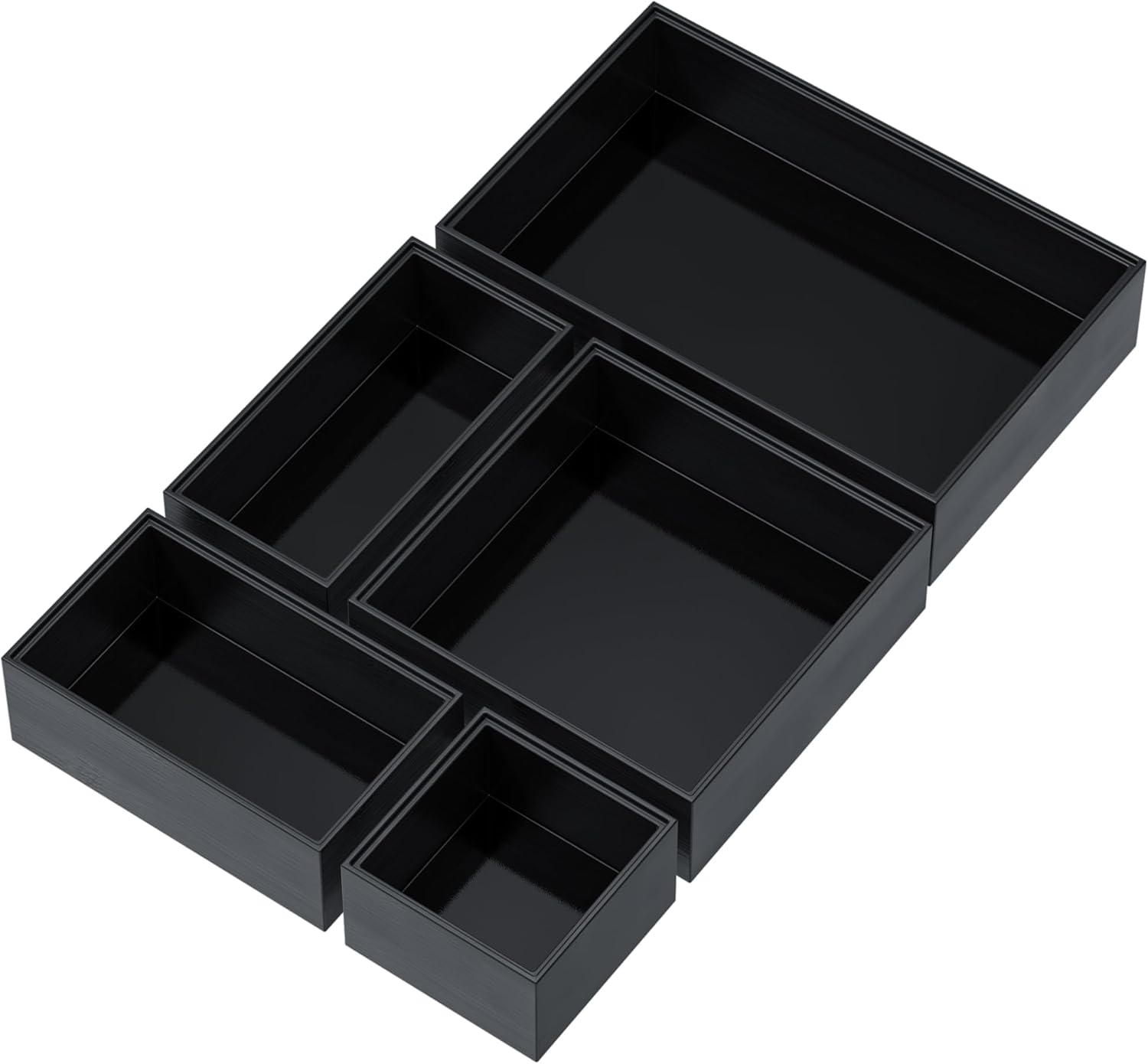 Bamboo Drawer Organizer Set, 5 PCS Multi-use Varied Sizes Junk Drawer Organizer Kitchen Storage Box for Office, Home, Bedroom, Bathroom, Black