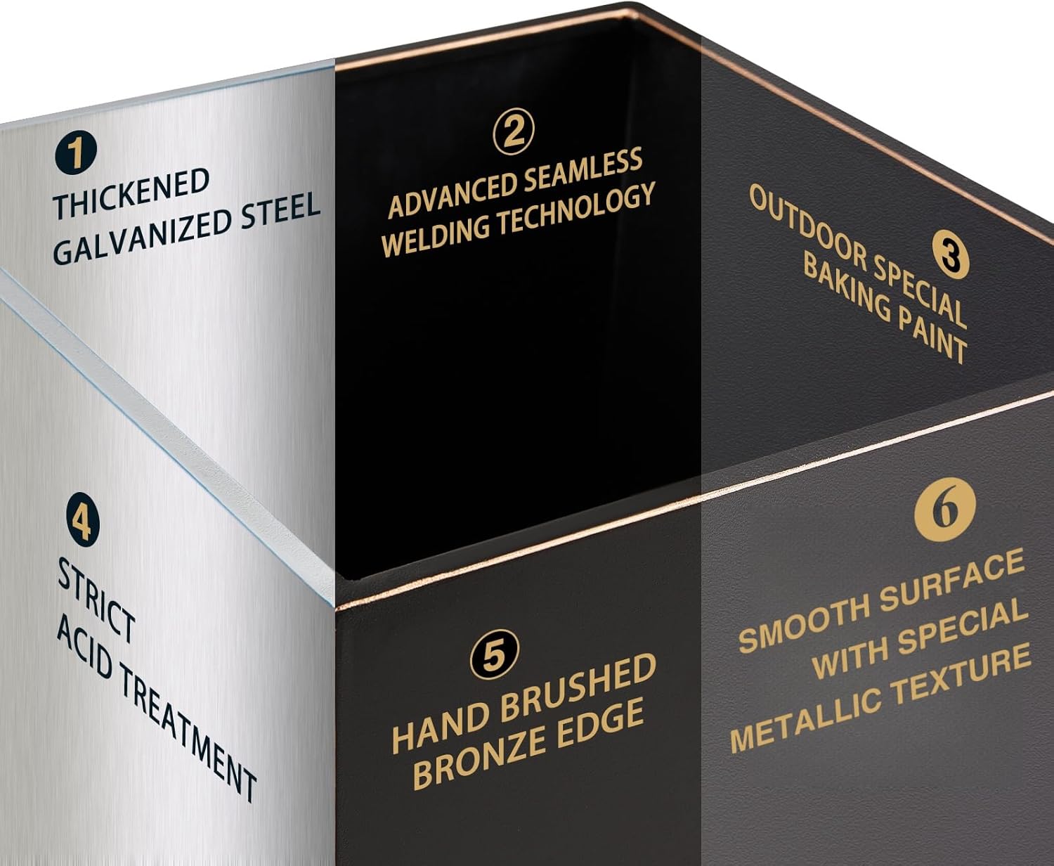 - 【METAL PLANT BOX】The surface of this planter box is coated with outdoor special baking paint, which uses an advanced powder method to give it an elegant metallic color and unique texture. It is manufactured from completely seam-welded, strong galvanized steel. Every planter is different since the red and copper borders are painted by hand.