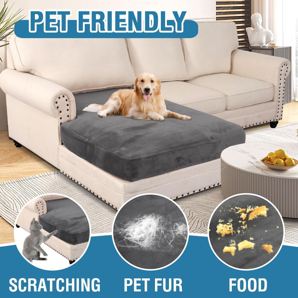 H.VERSAILTEX Velvet Stretch Individual Chaise Cover Sectional Couch Covers for L Shaped Sofa Both Left/Right Furniture Protector Seat Cushion Sofa Cover (1 Piece Chaise Cover, Grey)