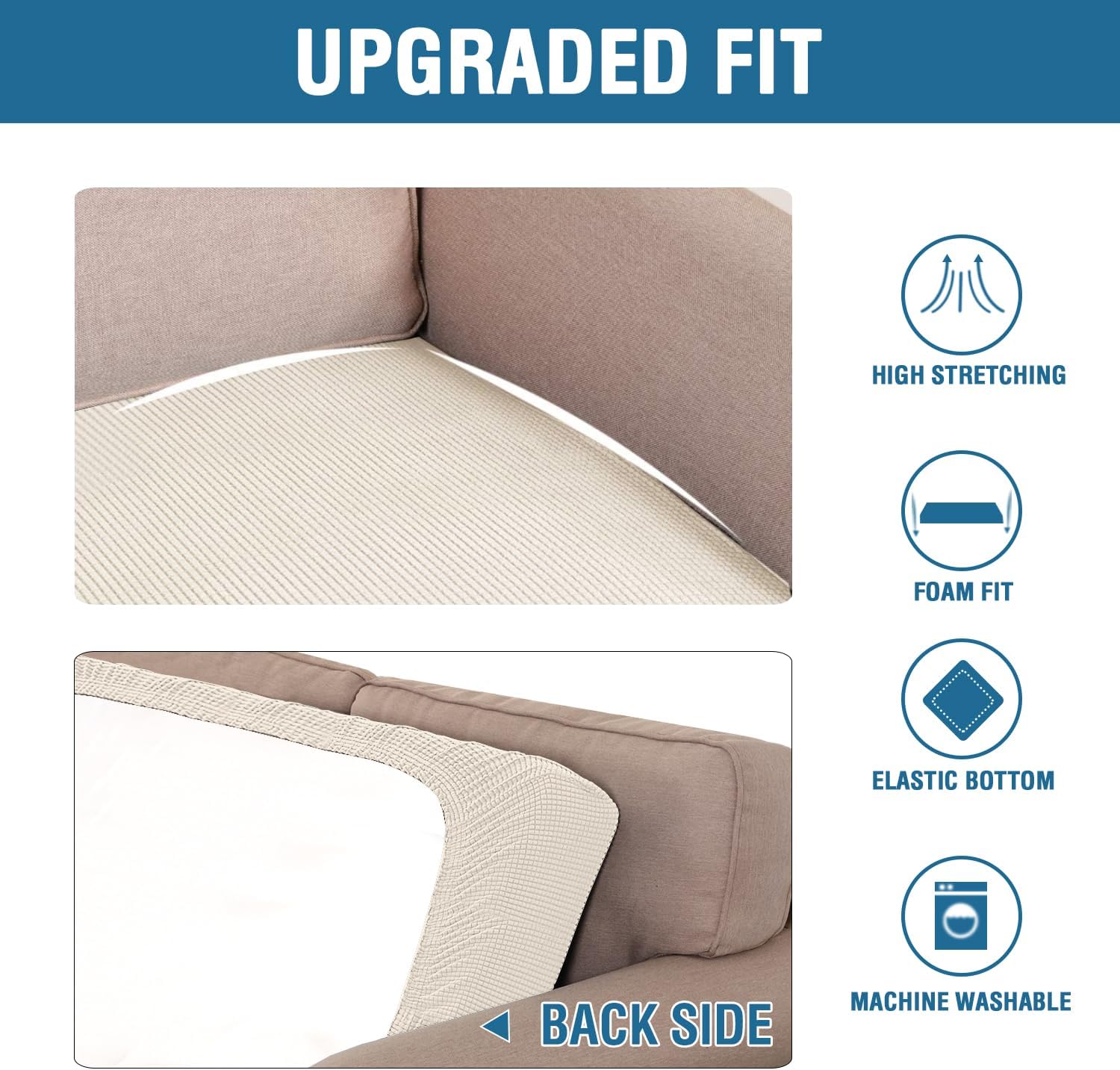 - GREAT FIT: Set of 1. This innovated cushion slipcover is crafted from durable and soft high stretch knitted jacquard fabric. Chair Seat Cover(fit total sitting area between 35-40 inches). Feature one-size-fits-most, kindly measure before ordering. Suitable for both T cushion and Box cushion styles