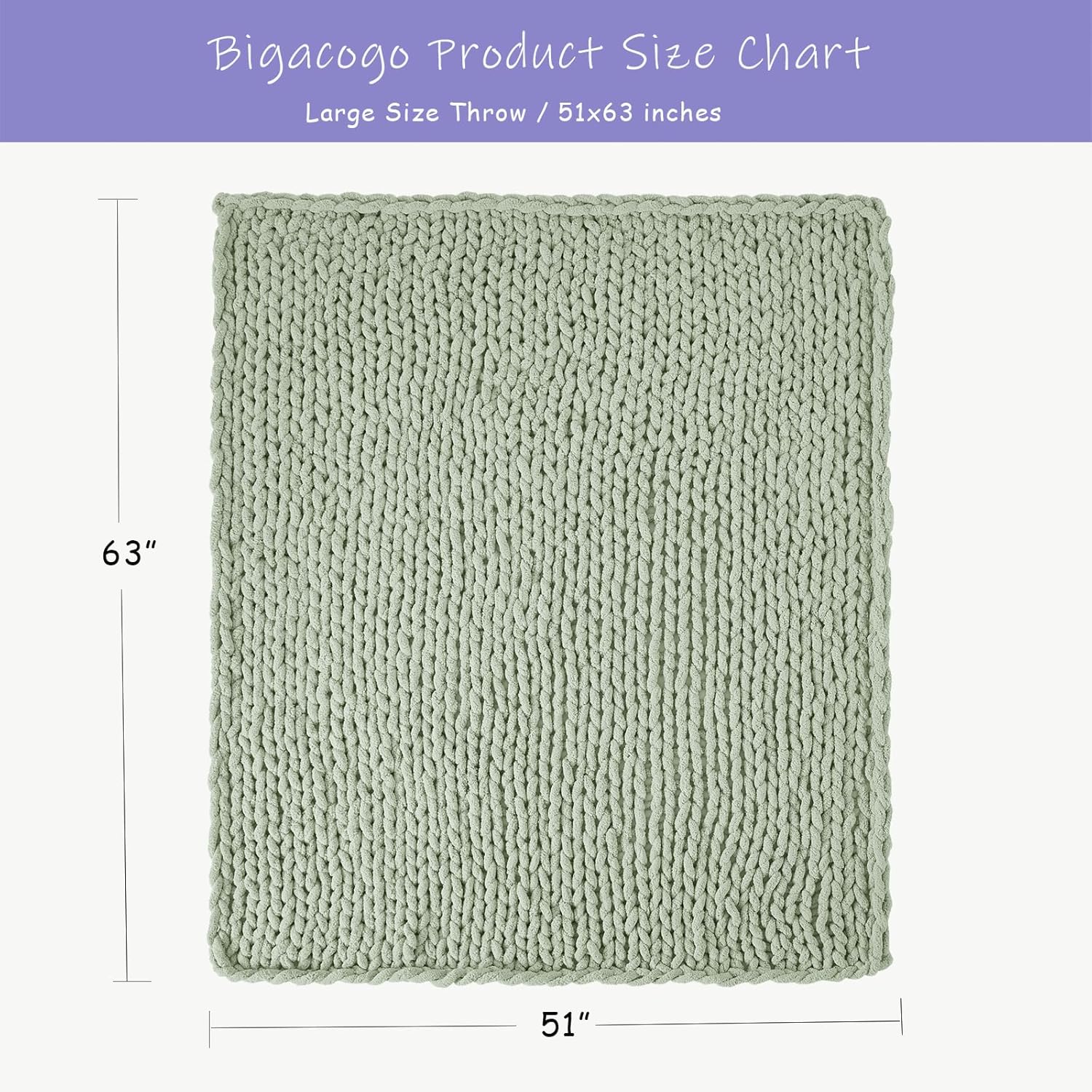 Bigacogo Chunky Knit Throw Blanket for Couch, 51x63 inches, 100% Hand Knitted with Thick Jumbo Chenille Yarn, Cozy Soft Large Rope Knot Cable Crochet Blankets for Sofa Bed Living Room, Sage Green