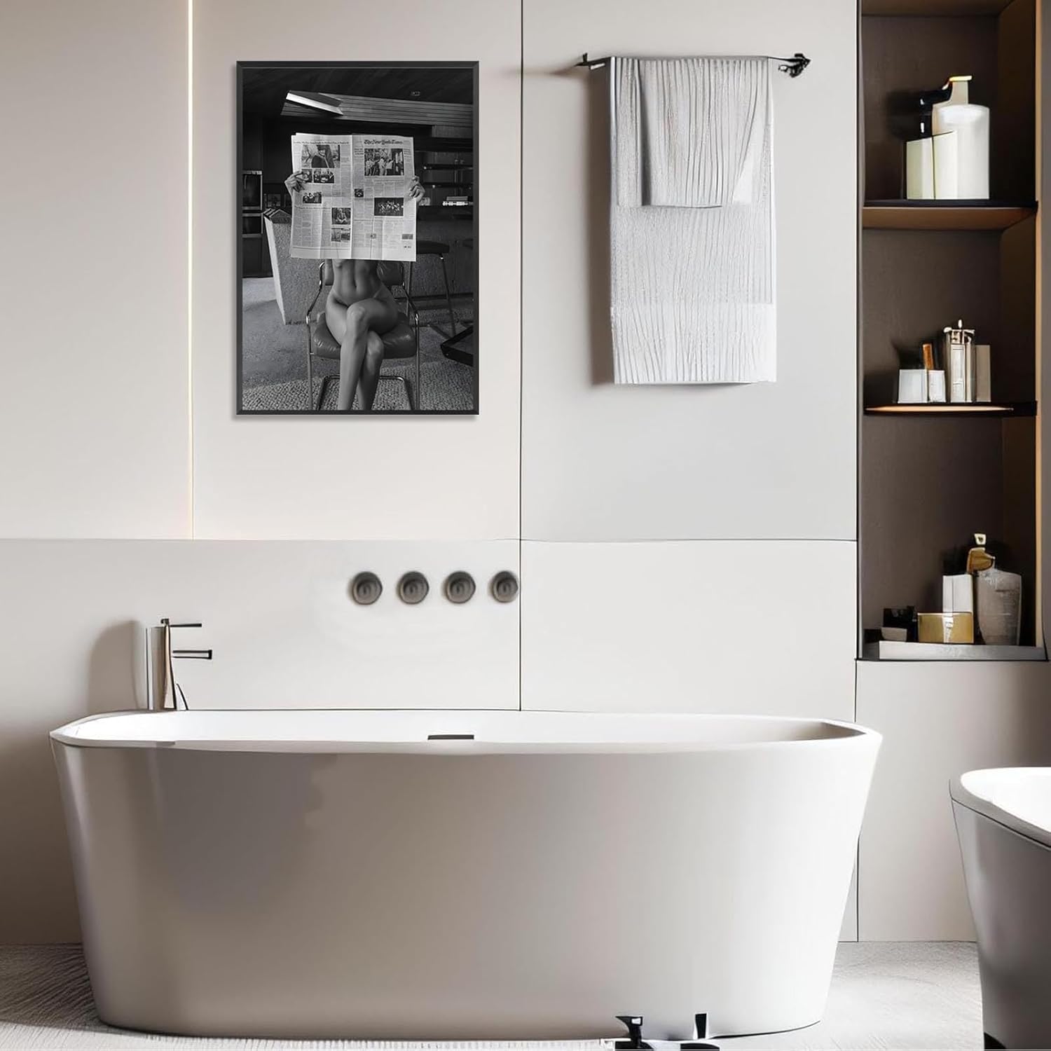Sexy Glamorous Reader Poster Feminist Art Black and White Preppy Canvas wall art Retro Room Aesthetic Newspaper prints painting Trendy Naked Women Art wall decor 16x24in Framed