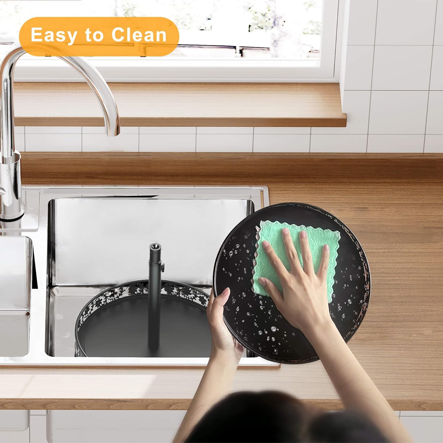 - 【Durable Material and Easy Cleaning】The heavy-duty lazy susan organizer is made of high quality rustproof and waterproof metal.The 2 tier lazy susan is stronger and more durable than plastic black lazy susan spice rack organizer. The two tier lazy susan spice rack's wear-resistant and abrasion-resistant coating ensures long-term use and easy to clean.