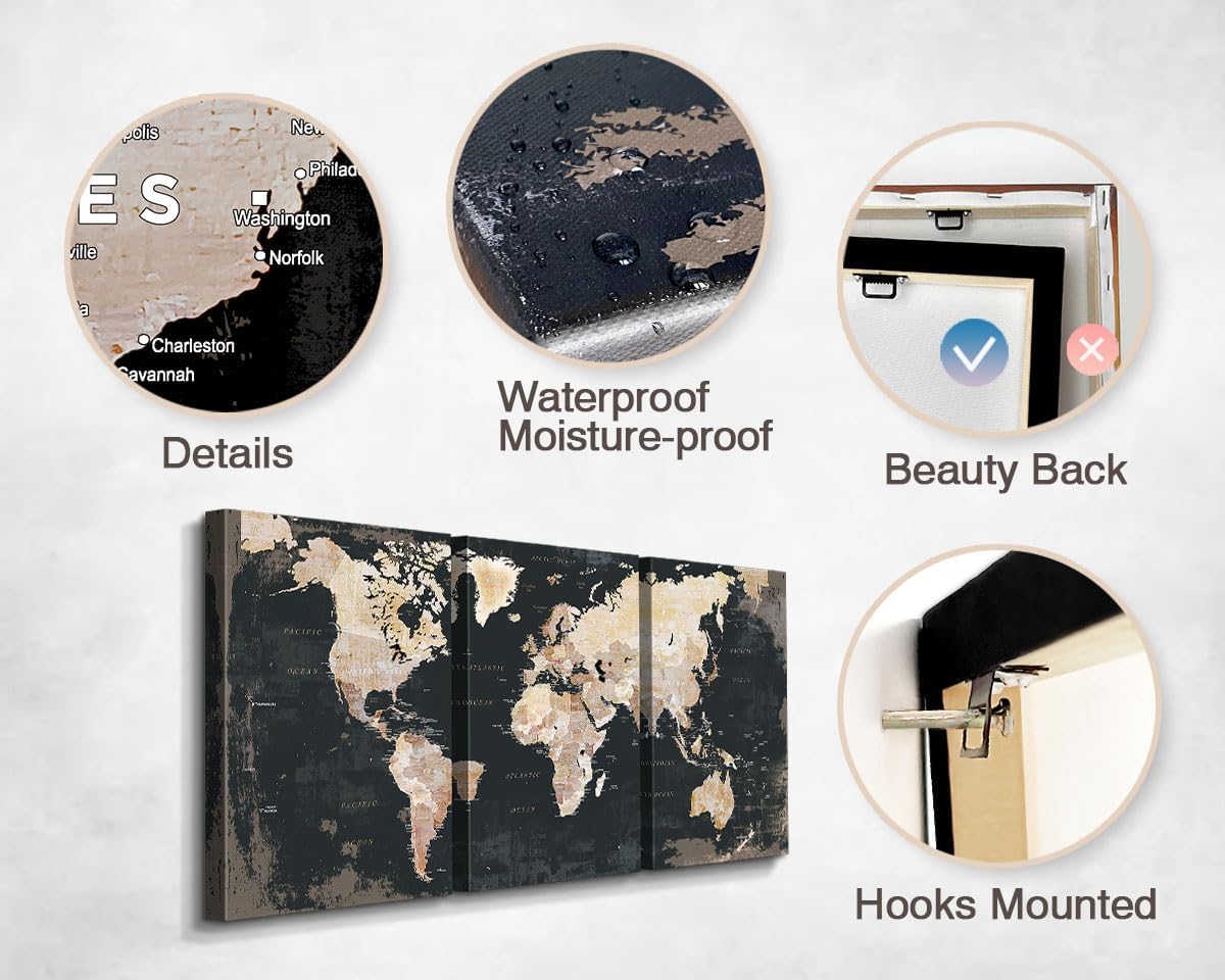 Living Room Wall Art Large Home Office Wall Decor Modern Motivational Giant World Map Pictures for Wall Decorations