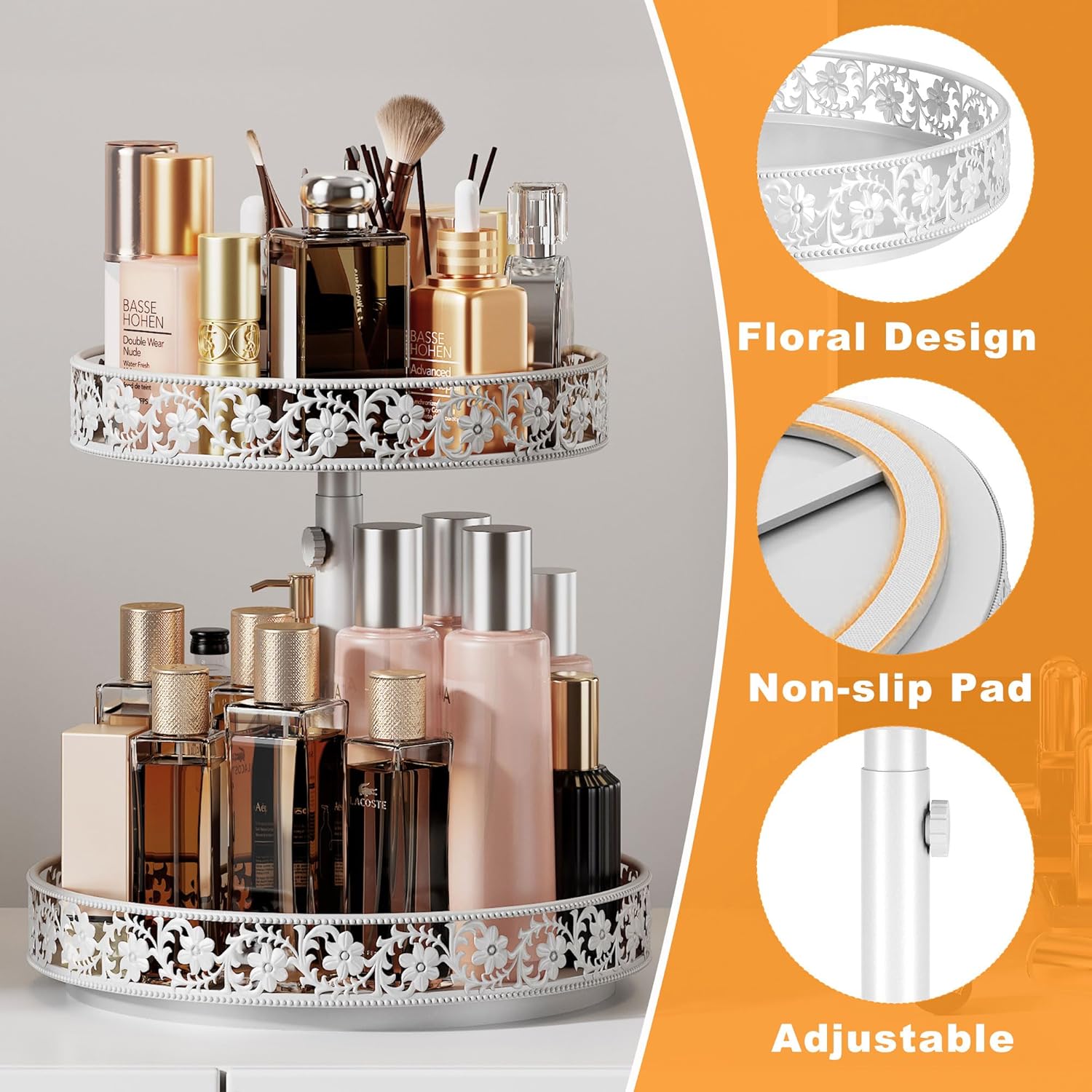 - 【Widely Used and Satisfactory Service】This spice rack organizer for countertop can be used for cabinet, kitchen countertops,sideboard storage,also suitable for dining table,bathroom,office,bedroom,living room,laundry room. The two tier lazy susan can be widely used to organize spice bottles,food jars,cosmetics,bath products,skin care products,nail polish,beverage snacks,etc.If you encounter any problems in the two tier lazy susan organizer use process, please let us know at any time, and we will provide satisfactory after-sales service within 24 hours !