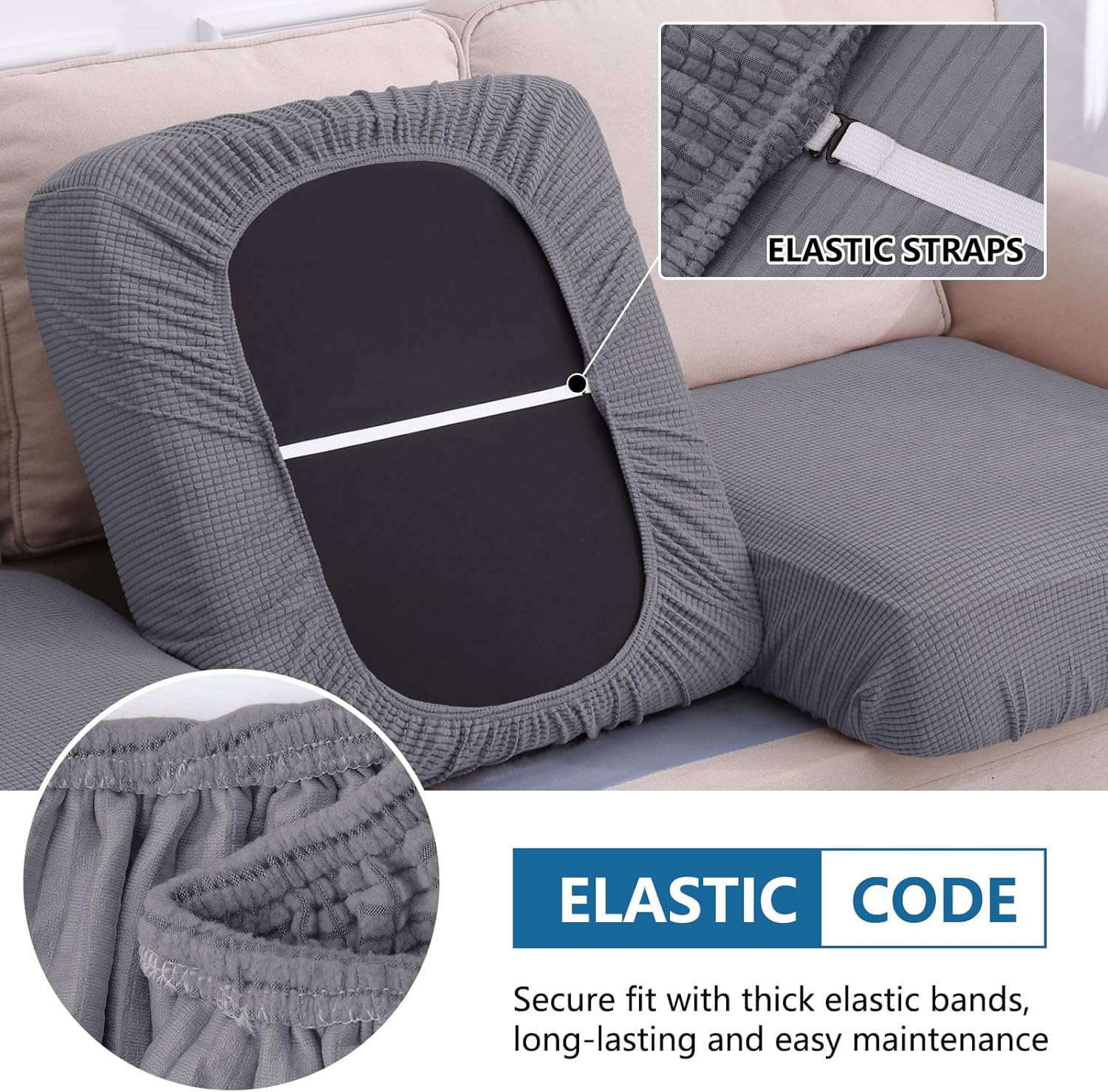 - [Super Elasticity] Crafted form Sturdy and high-quality spandex polyester fabric, which is soft, highly elastic. Stretch fitted couch cushion covers can adapt to various cushion shapes and styles.