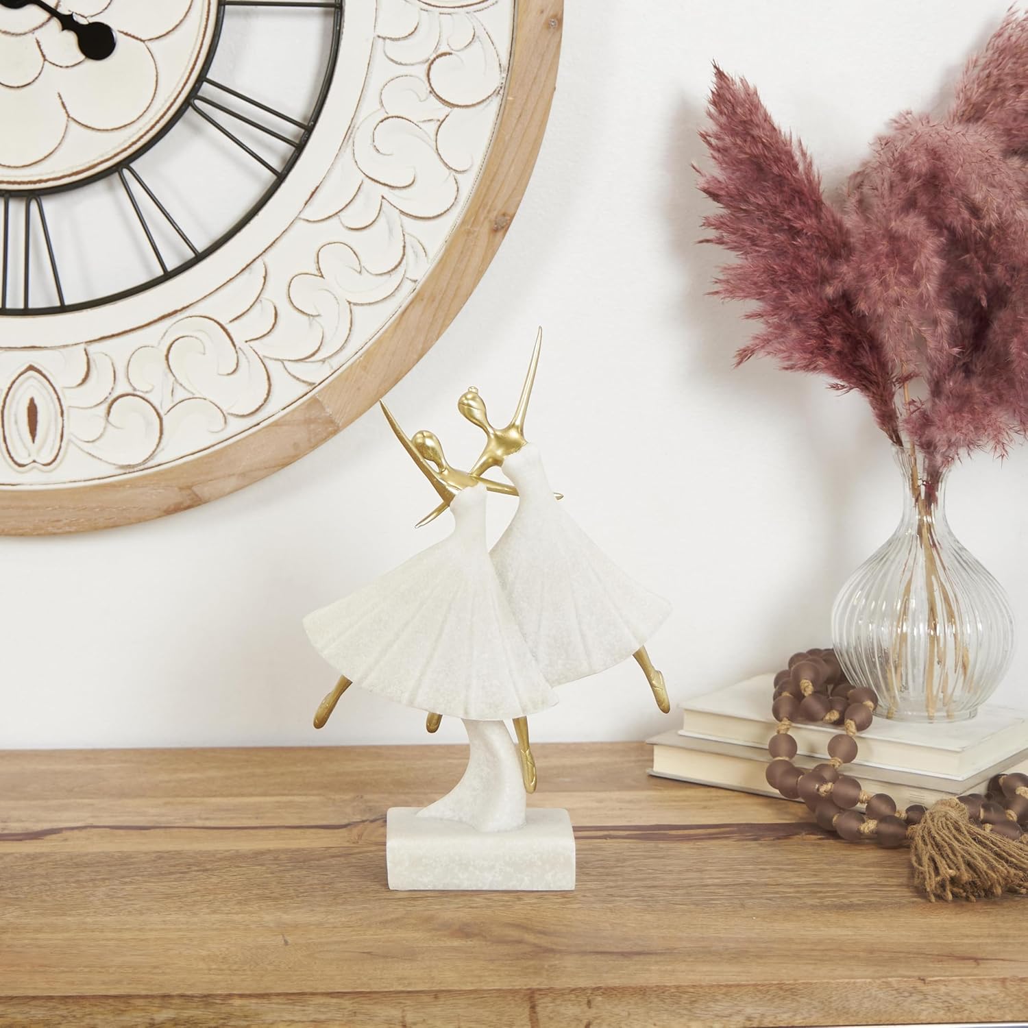 - DANCER ASYMMETRICAL ACCENT STATUE: This polystone sculpture features intricate details of dancing women that will bring the beauty of dance into your home