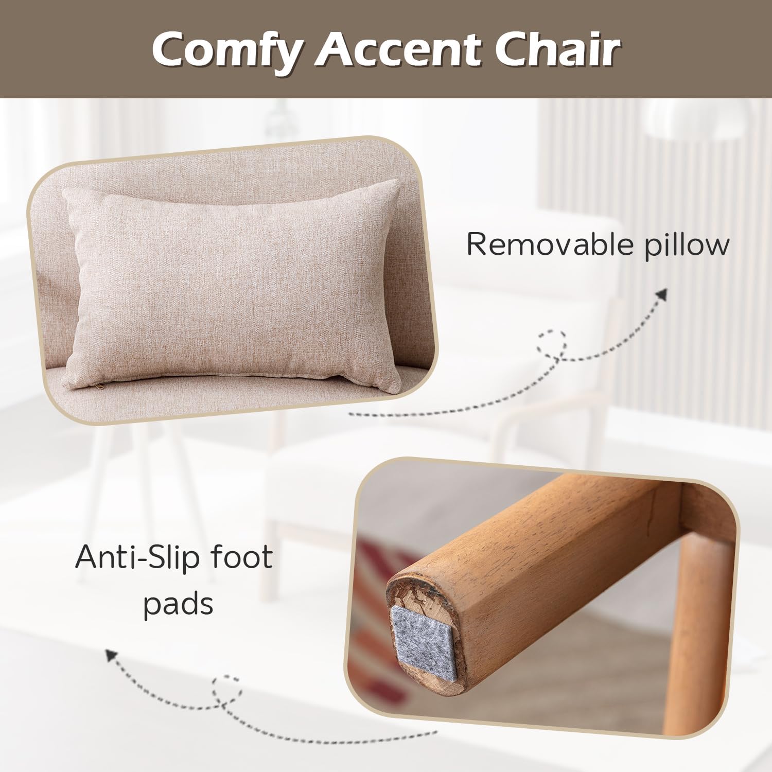 - 【Perfect Size & Sturdy Structure】The Overall size of accent chairs is 26"(W) x 33"(D) x 36"(H). The seat size is 22"(W) x 23"(D) x 17"(H). And the chair frame is made of hard solid wood with sturdy connection.We don't feel shaky when we enjoy our accent chair. And their max capacity can reach 300lbs.