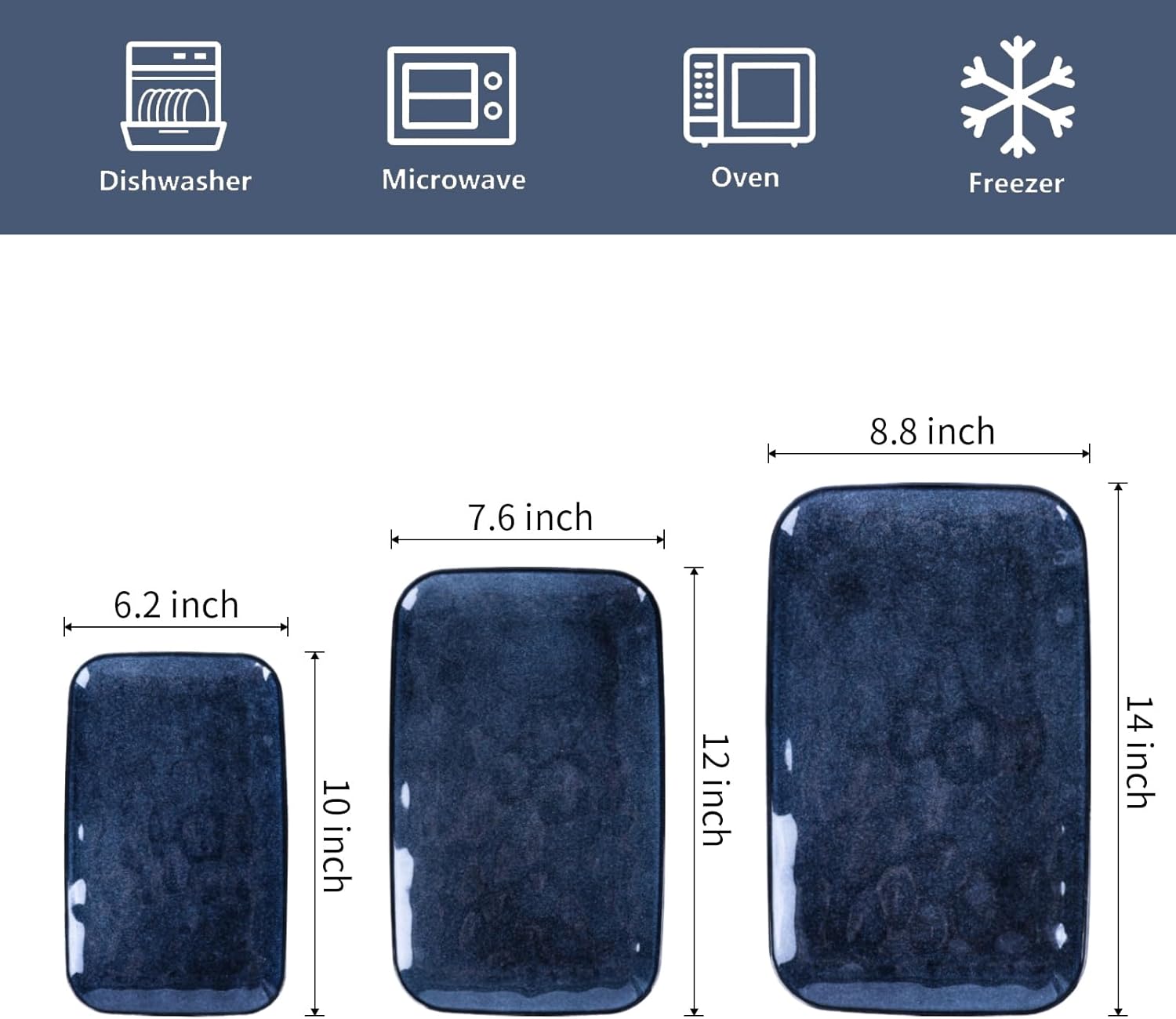 - DURABLE SERVING PLATTER SET: These ceramic rectangle dinner plates using only the highest-quality clay, which enable the porcelains to be much safer and healthier, sturdy and durable, you can safely use them in Microwave, Ovens, Freezer, and Dishwashers.