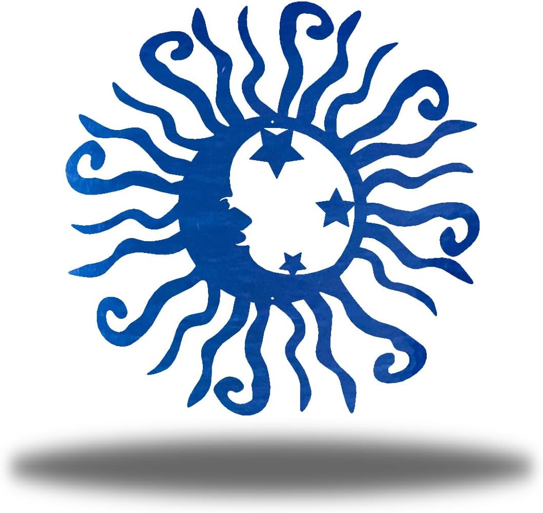 Riverside Designs Wacky Solar Moon Metal Wall Art Steel Outdoor Decor | Heavy-Duty and Waterproof | Made in USA (Blue, 18L x 18W)