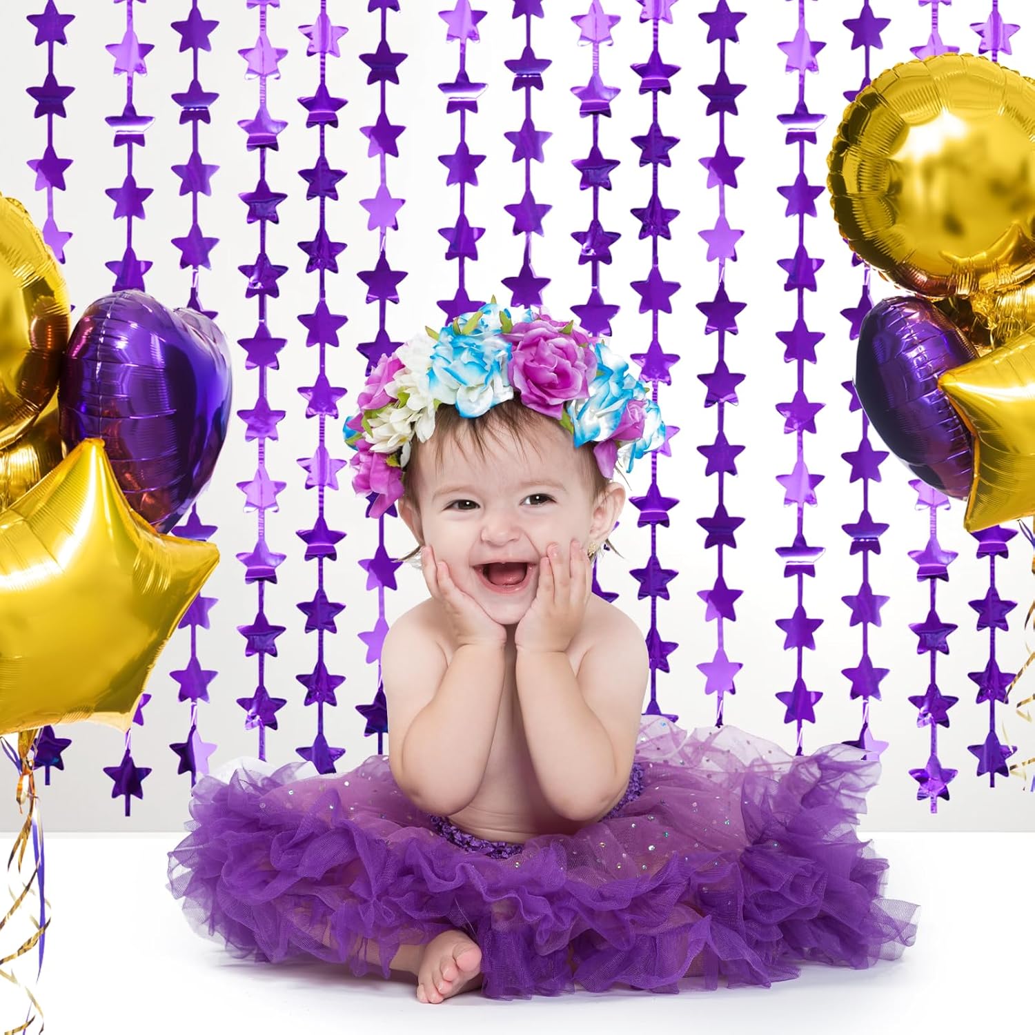 - 🖤【TINSEL MATERIAL】: Our glitter purple stars streamers is made of tinsel with shiny surface, lightweight and durable metallic fringe curtains. High quality fringe curtains, high toughness, unbreakable, can be used for a long time.