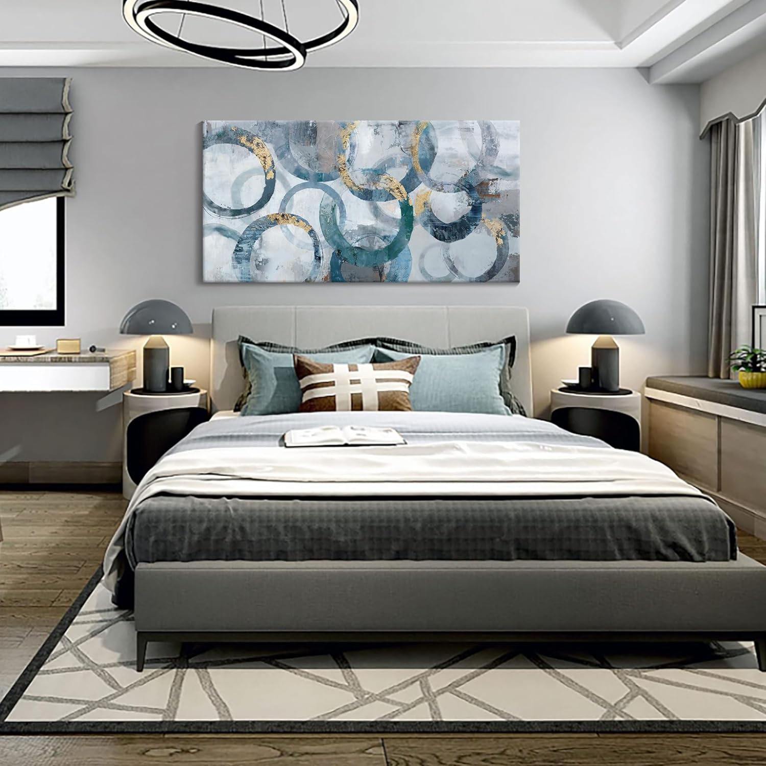 - wall pictures for living room: Experience the artistic elegance of our paintings adorned with intricate circles and delicate gold leaf accents, adding a touch of opulence to your decor.