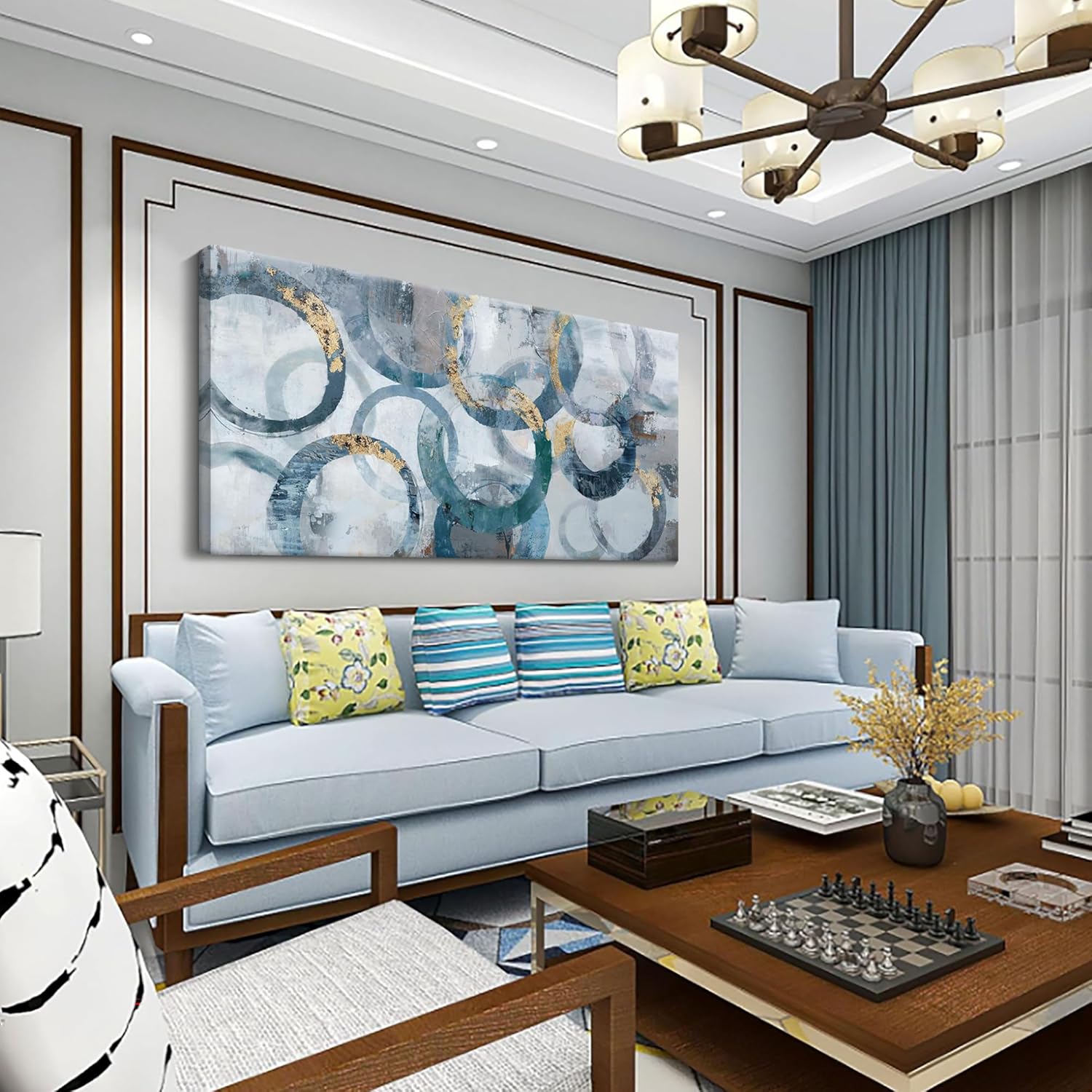 - wall pictures for living room: Experience the artistic elegance of our paintings adorned with intricate circles and delicate gold leaf accents, adding a touch of opulence to your decor.