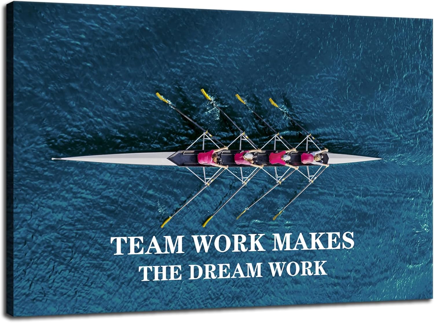 Inspirational Wall Art Success Team Work Makes The Dream Work Motivational Poster Quotes Prints on Canvas Wall Decor for Living Room Bedroom Office Home Decor Framed Ready to Hang[12" W X 18" H]