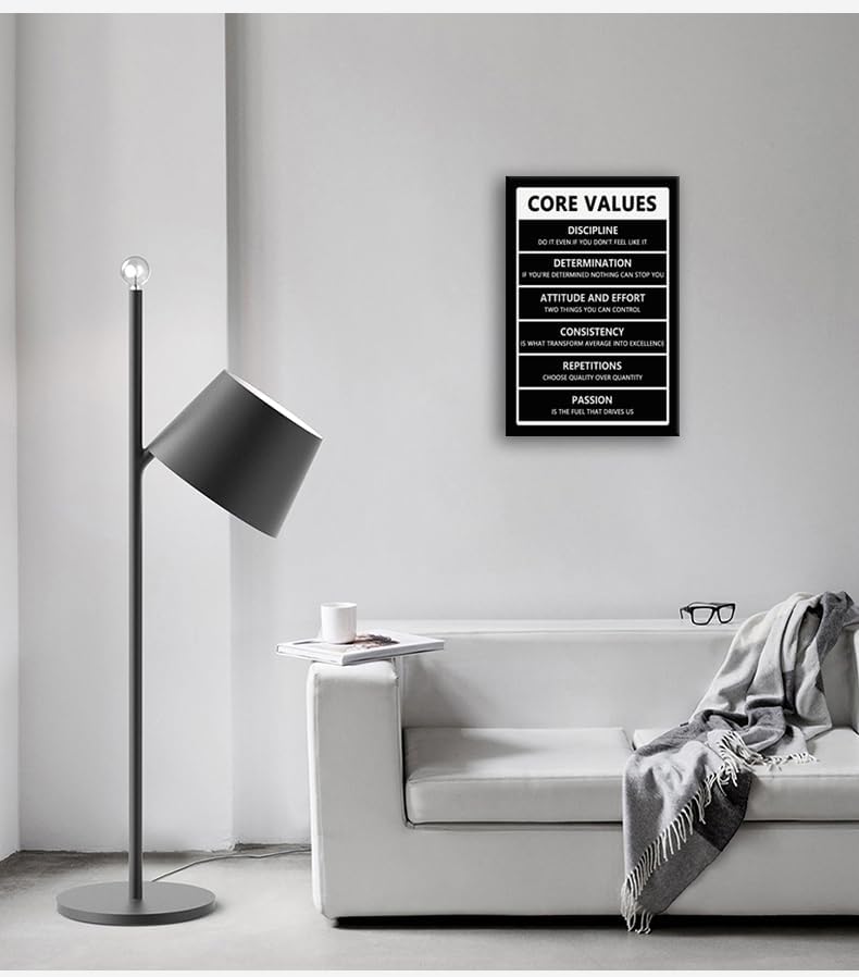 Inspirational Wall Art Office Wall Decor Motivational Positive Quotes Painting Picture Framed Inspirational Core Values Poster Painting Prints Artwork Home Living Room Classroom Decor[12" W X 18" H]