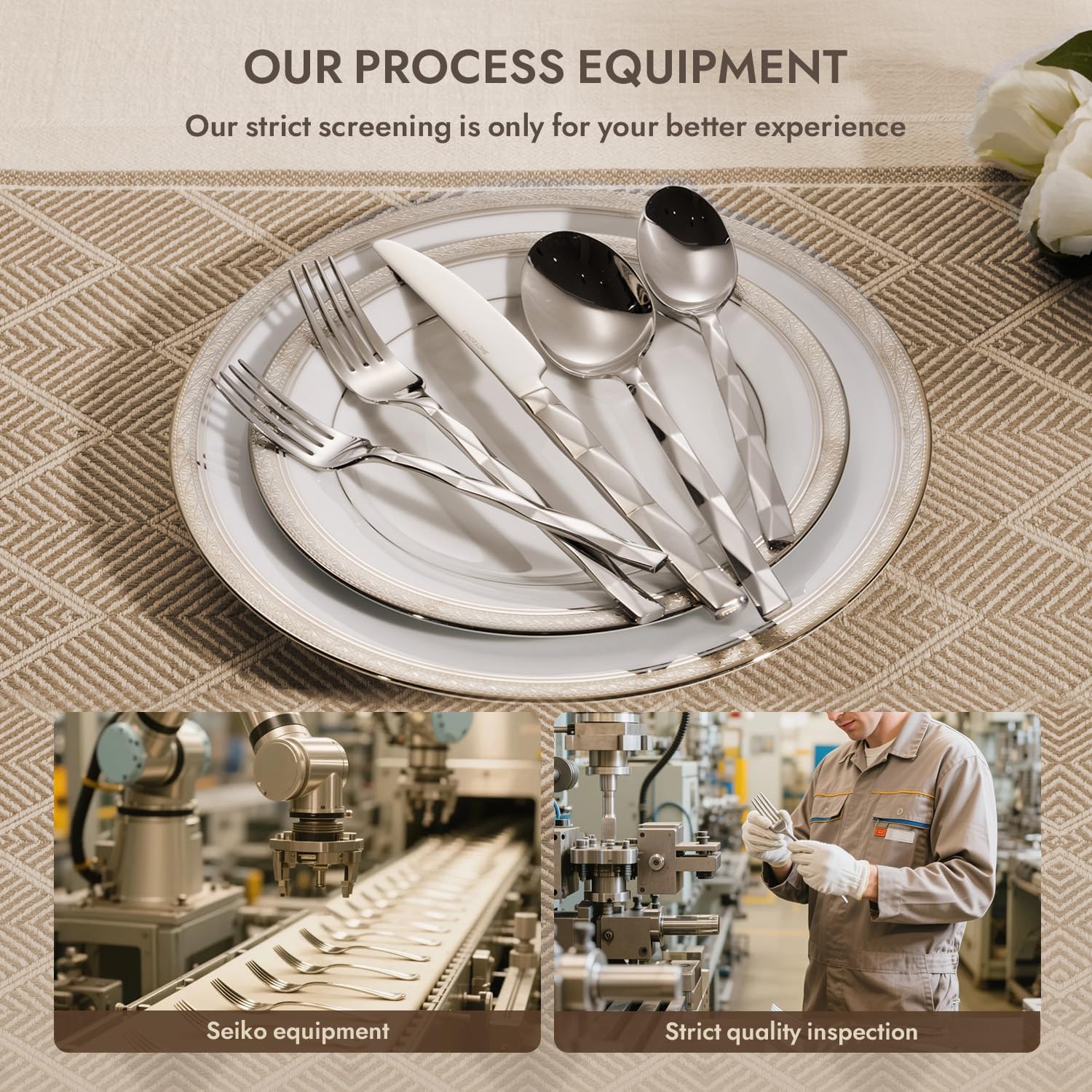 - TOP WORKMANSHIP:This tableware use more than 10 times handcraft polishing instead of machine polishing to make the surface like a mirror. High-temperature forging technology enhances the hardness of the material and will not bend or deform.