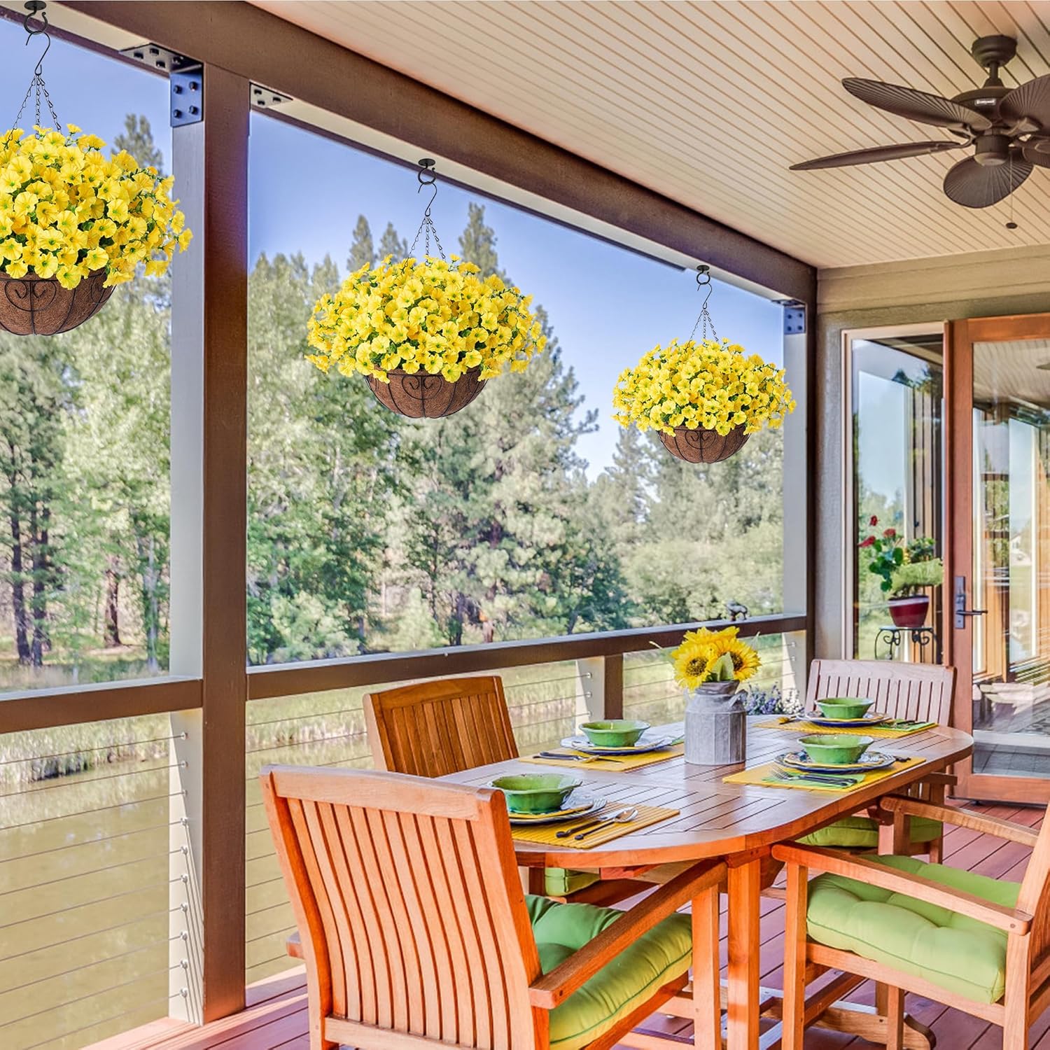 - Durable and UV Weather-Resistant: The looking real fake hanging plants are made of high quality silk cloth and plastic, which are designed to withstand outdoor elements, and UV and all weather resistant, so they won't fade or deteriorate in the sunshine.