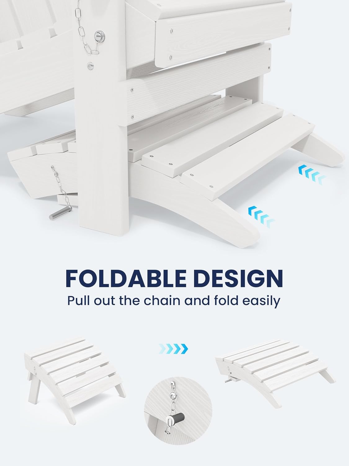 - [Space-Saving Design]: The KINGYES Folding Adirondack Ottoman is designed with a foldable feature, making it compact and easy to store under your chair when not in use. This space-saving innovation is perfect for any outdoor enthusiast.