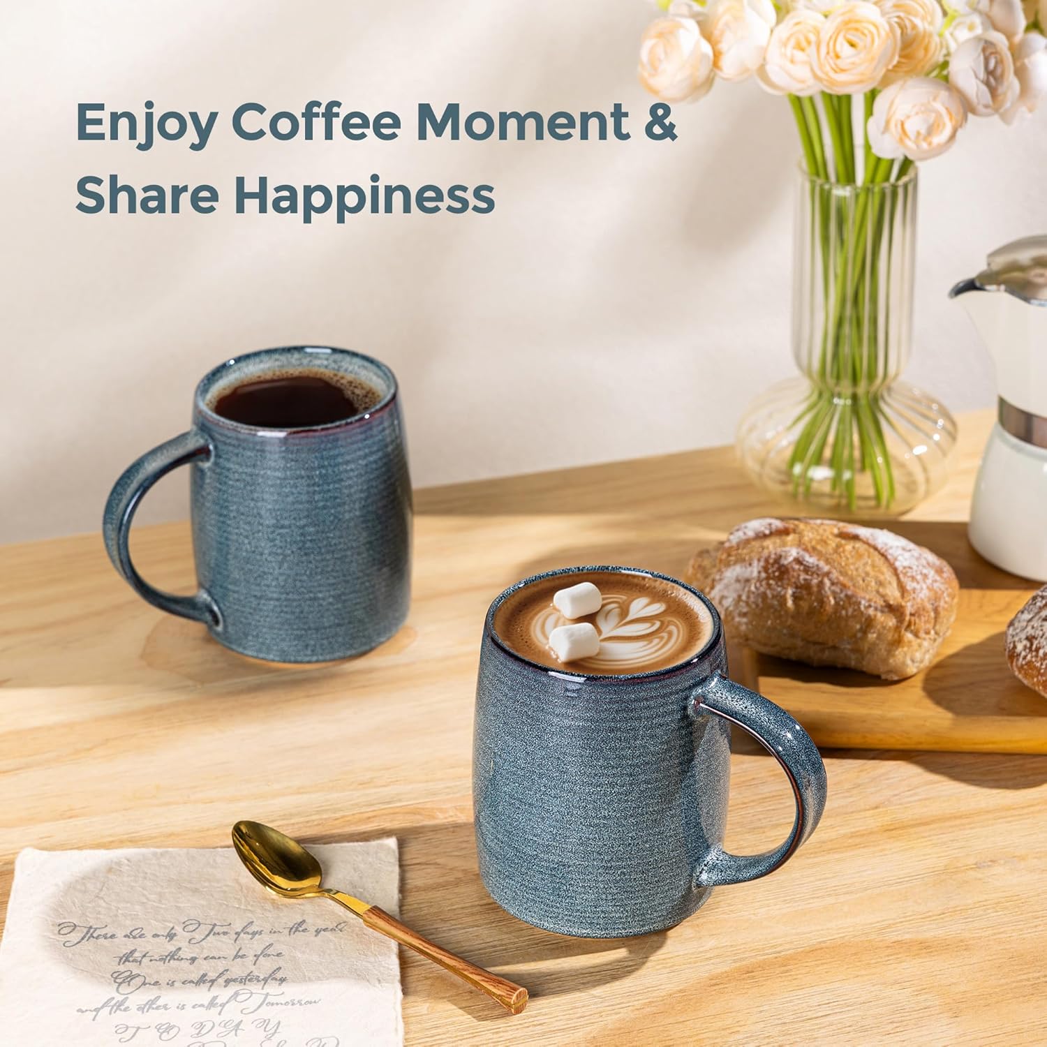 - LARGE HANDLE WITH BEAUTIFUL REACTIVE GLAZE : These coffee mugs features a large open handle that provides a comfortable and secure grip. The handle remains cool even after microwaving, and the beverages stay warm, feature a unique reactive glaze finish, each piece with handcrafted decorative is beautifully individual, adding a touch of sophistication to your table setting.