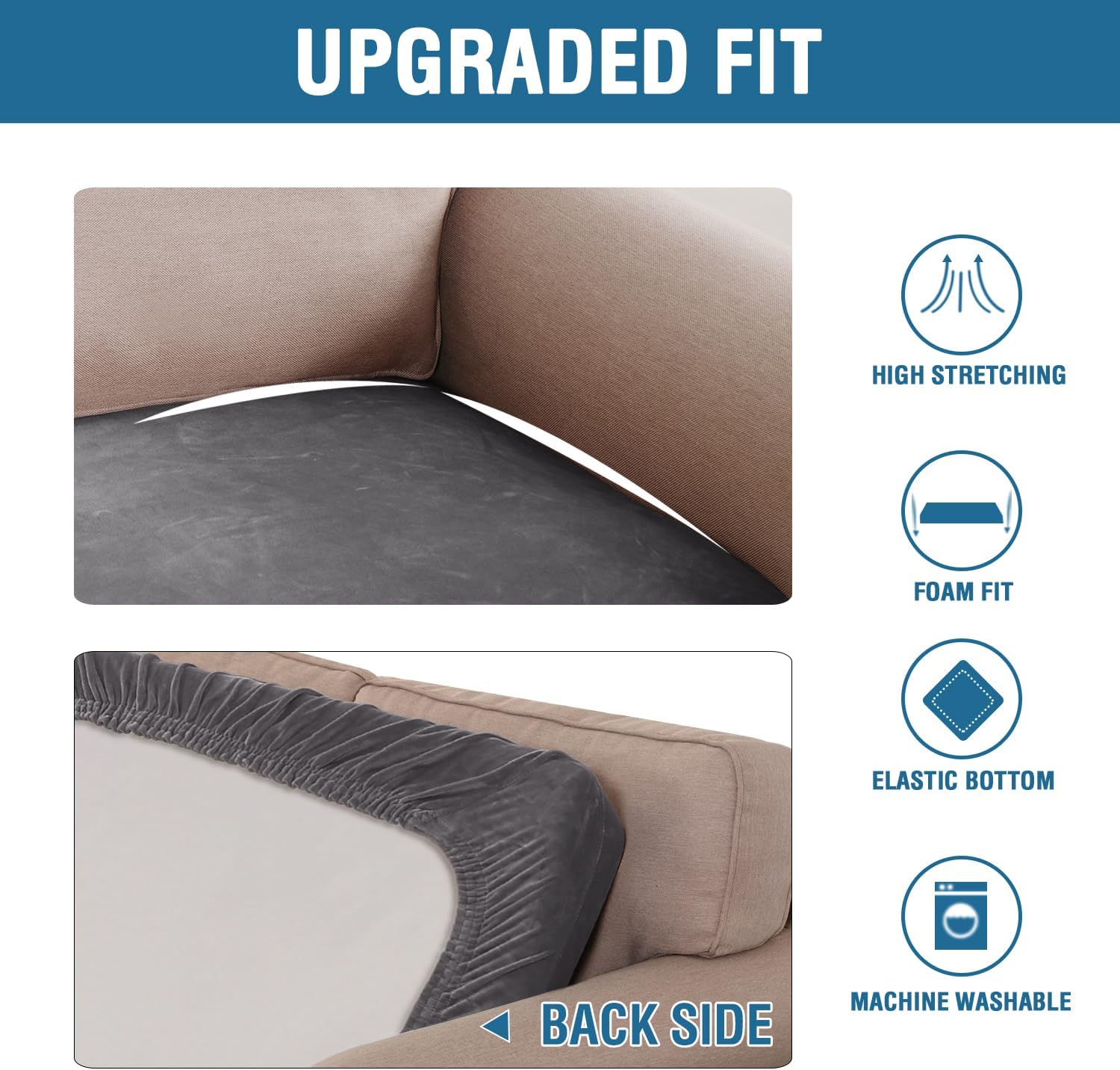 - INCREDIBLY COMFORTABLE VELVET: Products passed GLOBAL RECYCLED STANDARD certificate.1 piece included. Crafted from luxurious polyester and spandex velvet plush fabric, feature thick, soft, smooth, anti-wrinkle, no fading, durable as well as highly stretch. Protect your cushion furniture from daily wears and tears, stains, kids, scratches from pet claws, dogs or accidental spills