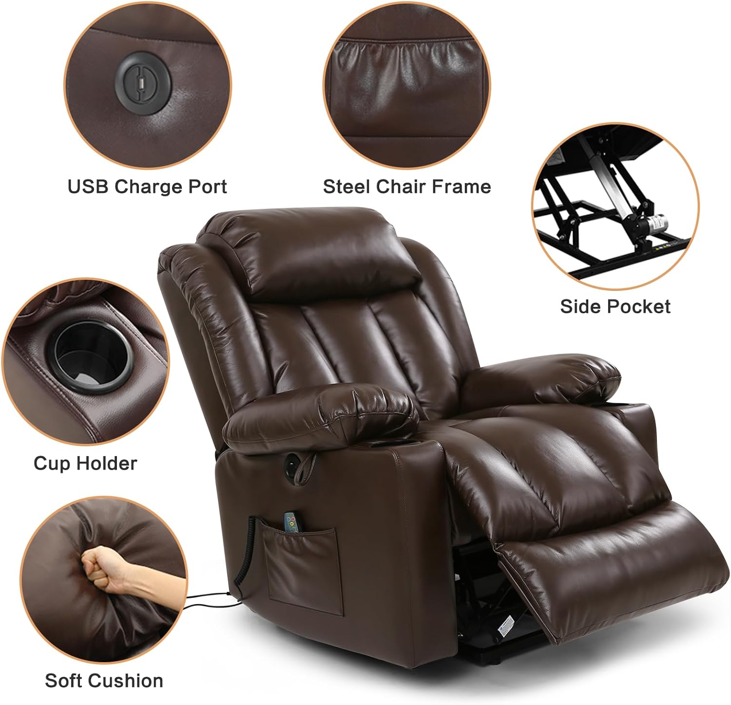 Power Lift Recliner Chair for Elderly Breathable Leather Recliner Chair with Massage and Heat for People Limited Mobility,2 Cup Holders,Electric Stand Assist,USB Ports,Gifts for Family (Brown)