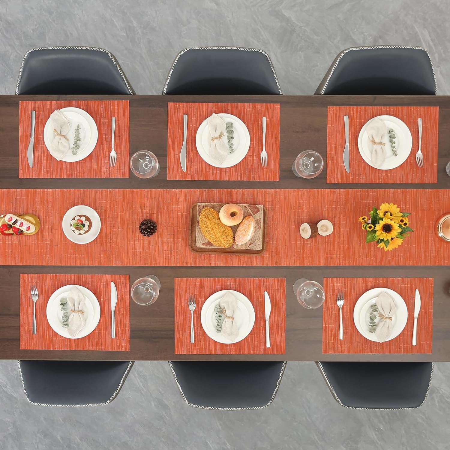 Myir JUN Placemats Set of 4, Vinyl Woven Placemats Place Mats Indoor Set of 4 Washable Table Mats Non-Slip Place mats for Dining Table (Orange, Set of 4)