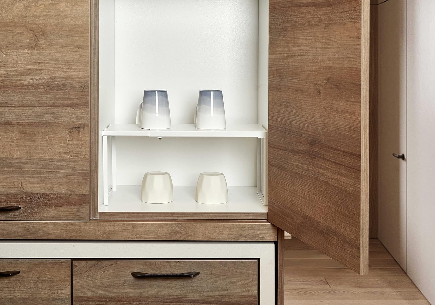 - FUNCTIONAL STORAGE: This cabinet shelf can be used in various scenes of your home including cabinets, pantry, cupboards, kitchens, studio, bathrooms, bedrooms, under sink and any counter surfaces. You may use the shelf as a storage organizer for plates, cups, dishes, pots, bowls, snacks, books, magazines and whatsoever.