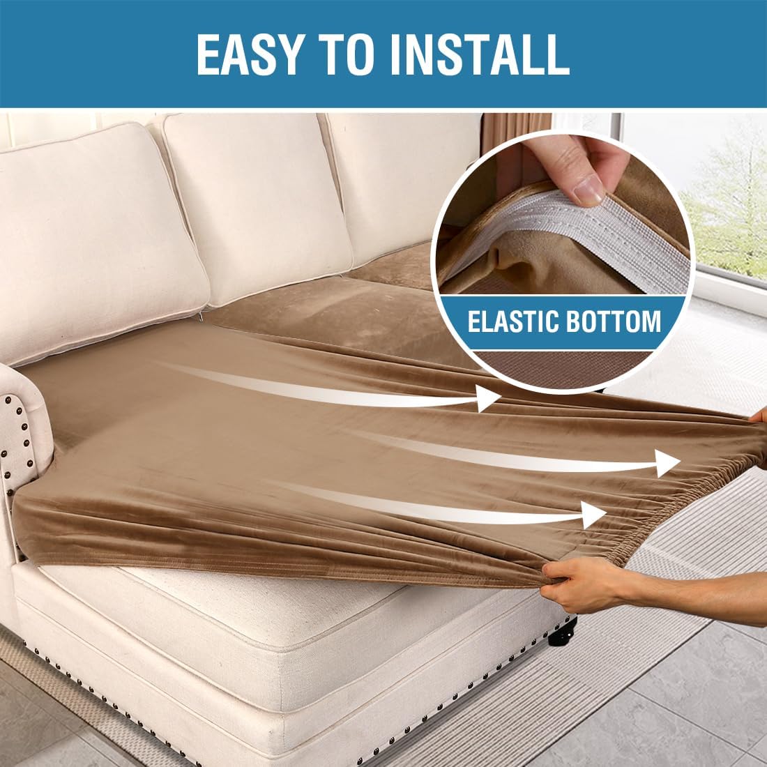- STAY IN PLACE: Featuring non-skid thick elastic bottom, our cushion slipcover can stay tight with no snag, no wrinkling, shifting or slipping on both leather and cloth sofa. Check the installation guide carefully, it can be finished within 3 minutes by one person. It is very easy to put on and take down. (Installation Instructions Included)