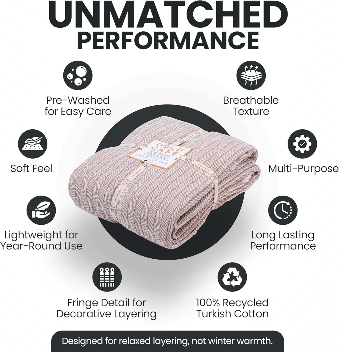 Gold Case Throw Blanket for Bed – 100% Recycled Turkish Cotton Bed Blanket – Decorative Throw Cotton Blankets for Living Room & Bedroom – Woven Twin Blankets – Vintage Beige – 71x90