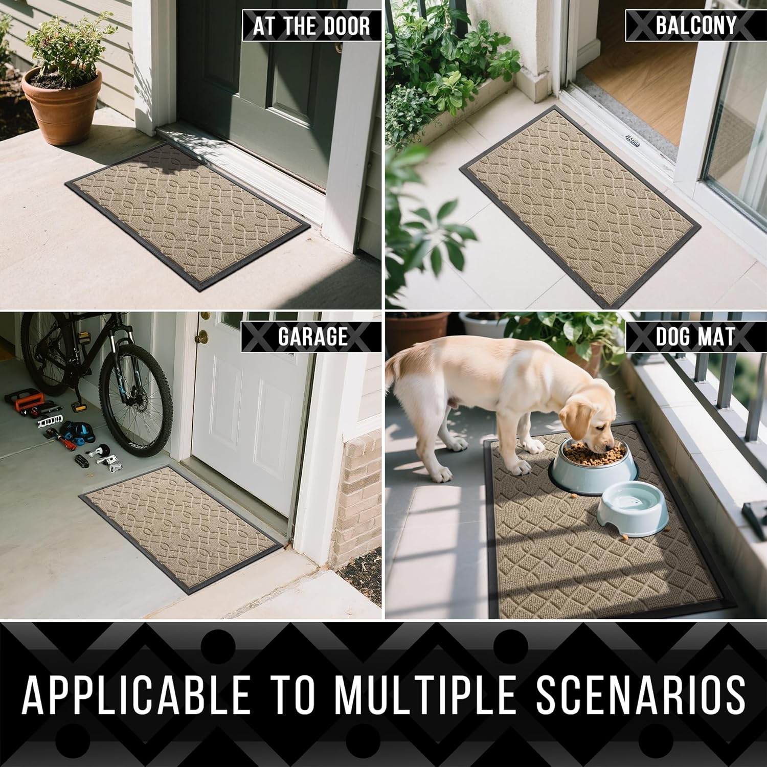 - 【Capture Dirt and Moisture】: Yimobra front door mat adopts heart striped groove design, forming a detention dam extending in all directions, helping to capture dirt, dust, gravel, mud, sand, grass or other messy debris and prevent them from entering Indoor; The surface of floor mat beautifully woven polyester fabric absorbs moisture, and the sturdy oblique rubber edge will not accumulate water in rainy and snowy days, keeping your home dry and clean
