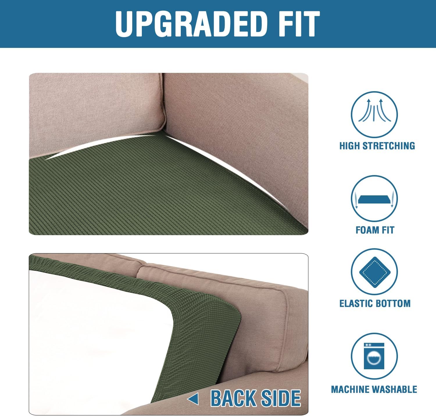 H.VERSAILTEX Super Stretch Individual Seat Cushion Covers Sofa Covers Couch Cushion Covers Slipcover Sets Thick Jacquard Textured Twill Fabric (1 Piece Sofa Cushion Cover, Bronze Green)