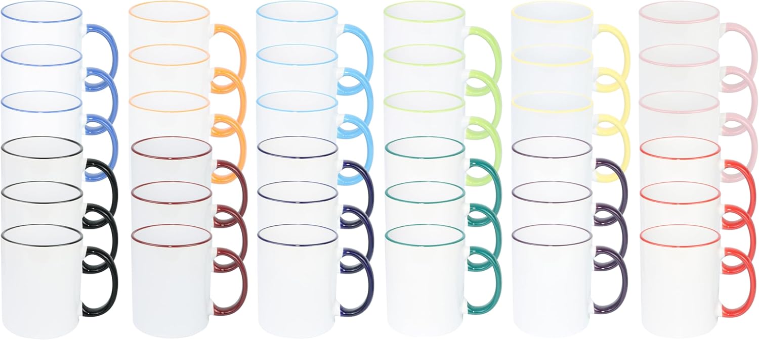11oz White Ceramic Sublimation Coffee Mug in White Gift Box,12 Mixed Colors Banded, Case of 36