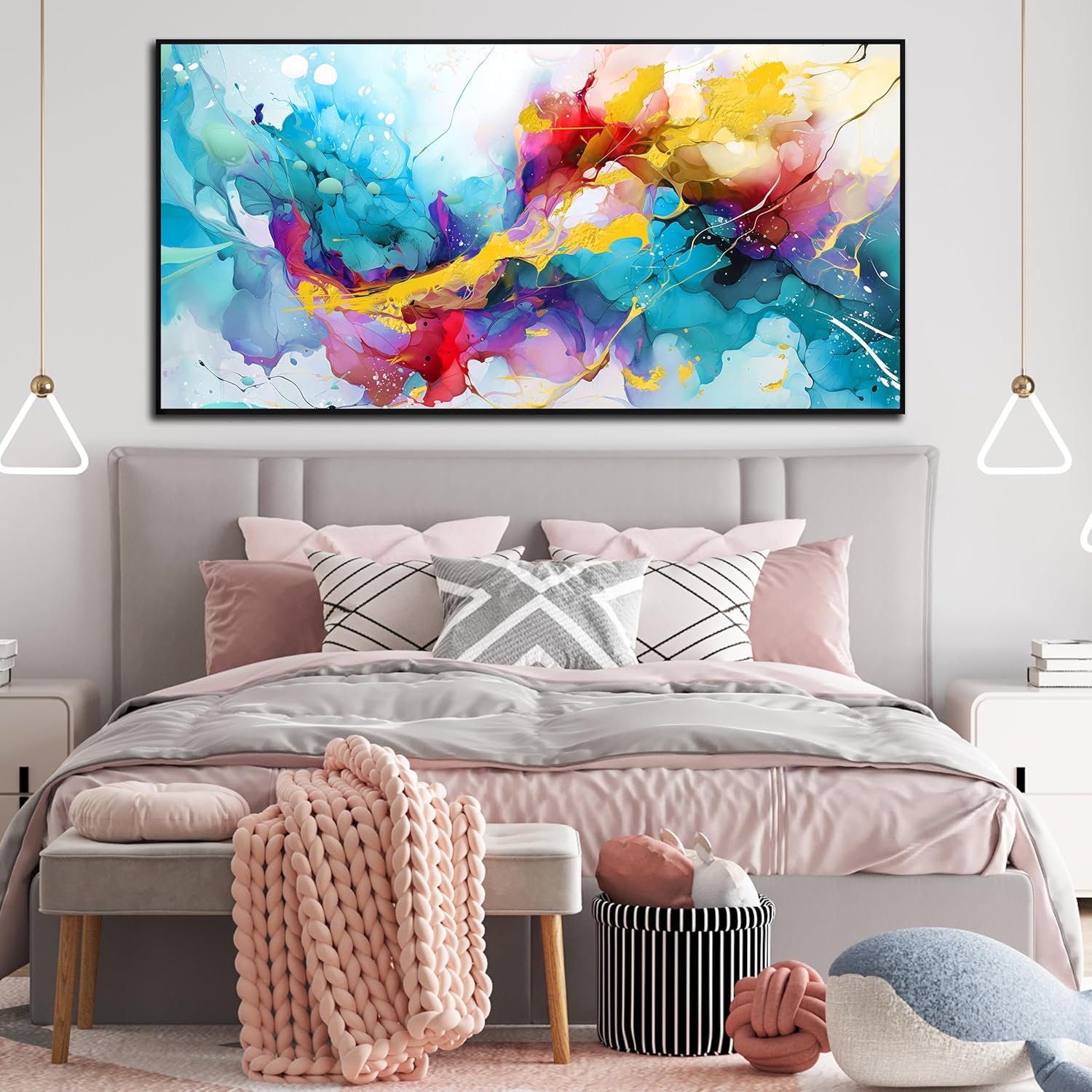 - 【HI-Q MATERIAL】 High quality, HD prints on premium canvas, waterproof canvas, UV resistant, fading resistant indoor. Colorful wall art for living room large size abstract art wall decor framed canvas wall art.