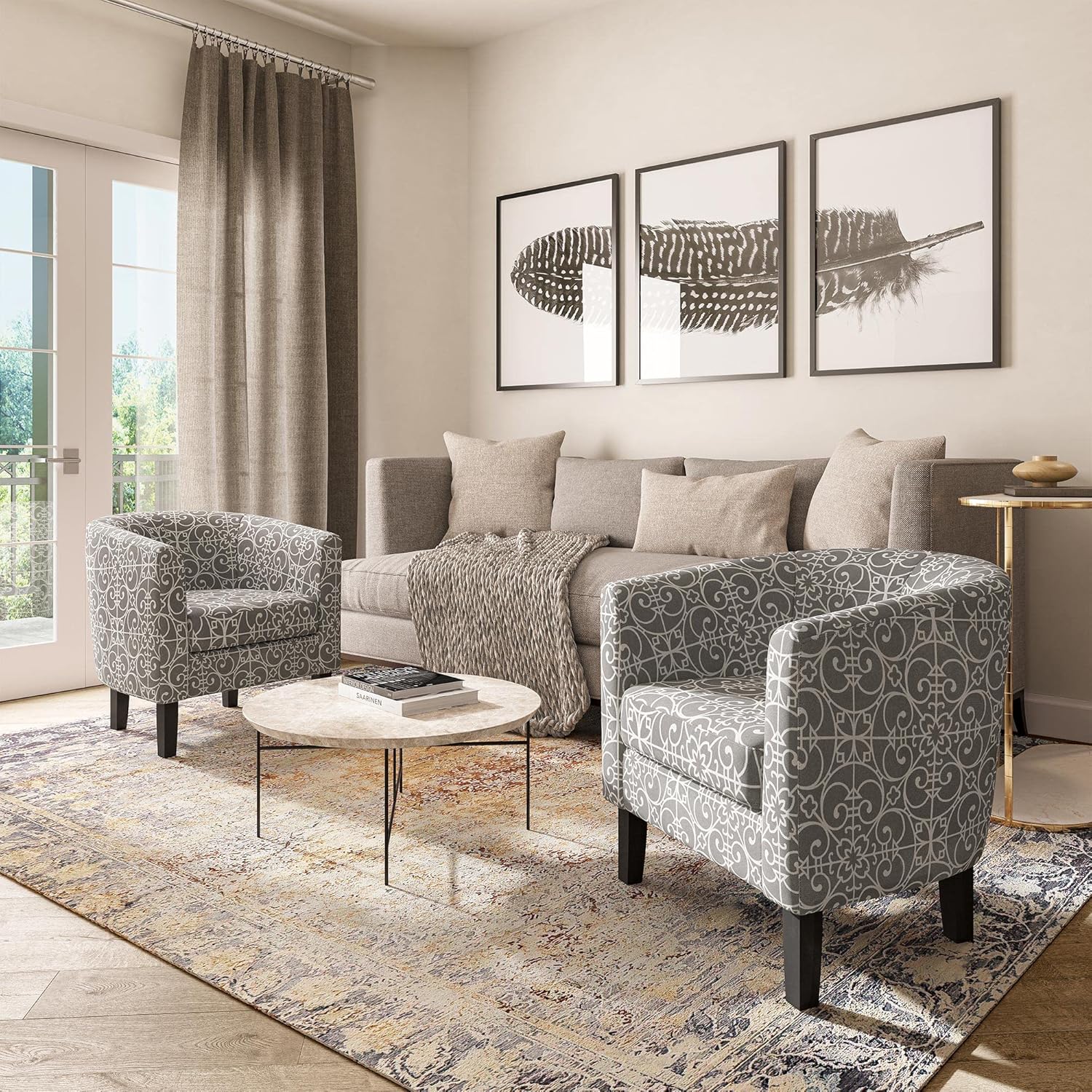 BELLEZE Accent Barrel Chair Set of 2, Linen Round Chair Club Tub Sofa Corner Chair with Flared Legs and Cozy Soft Padding for Living Room Bedroom Waiting Room - White & Gray