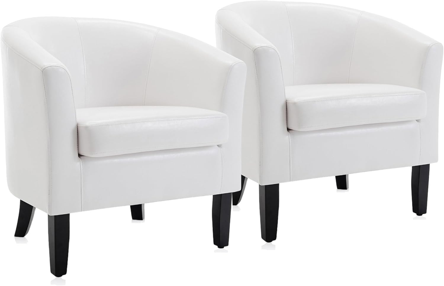 BELLEZE Accent Barrel Chair, Set of 2 lub Tub Sofa Corner Chair with Flared Legs and Cozy Soft Padding for Living Room Bedroom Waiting Room - White