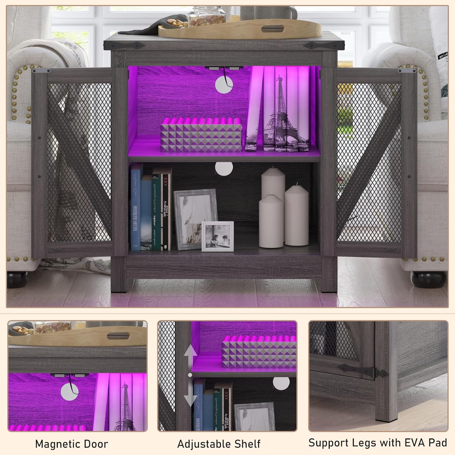 - Practical Large Storage Space: The hidden storage cabinet behind the mesh barn door provides extra large storage space, it can hold your storage baskets, daily necessities, receiver, and a large number of books, also store blankets, or even turn into a "safe space" for your pets. In addition, the shelves in the cabinet are adjustable so you can customize your storage as needed. Convenient storage solution that is easy to place by the sofa, bed, desk, or wherever it comes in handy.